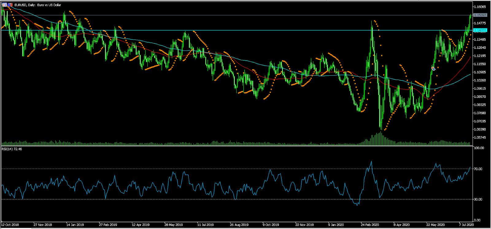 The euro rallied to an eighteen-month high as traders reacted to the €750 billion deal reached yesterday. The deal, which came after four days of intense negotiations, will help provide immediate relief to countries like Italy and Spain that have been affected significantly by the pandemic. It will