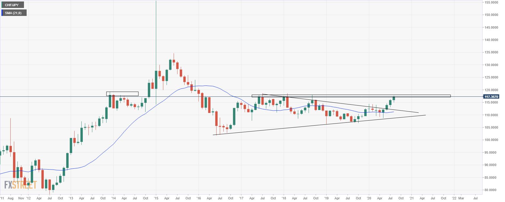 CHF/JPY has been in the hands of the bulls on a monthly breakout.