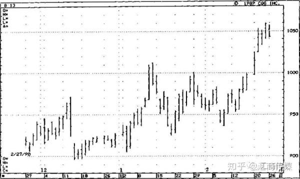 将线图与蜡烛线图放到一起直观地比较一下,其差别一目了然。 图1是我们熟悉的西方式折线图。图2是用图1同样的价格内容绘成的蜡烛图。在这张蜡烛图上,价格的起伏变化跃然纸上,给人 一种“立体市场”的视觉感受。比较而言,蜡烛图把平面的二维线图提升为三维图像了。从这个方面来看,蜡烛图的视觉效果更令人振奋。