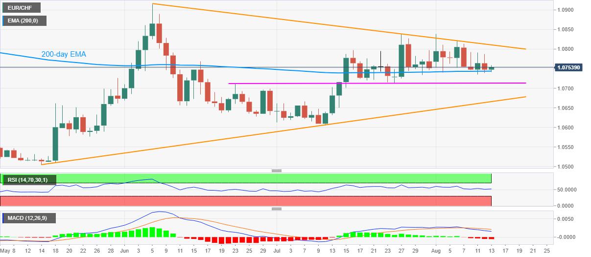 EUR/CHF prints 0.05% gains while portraying another bounce off 200-