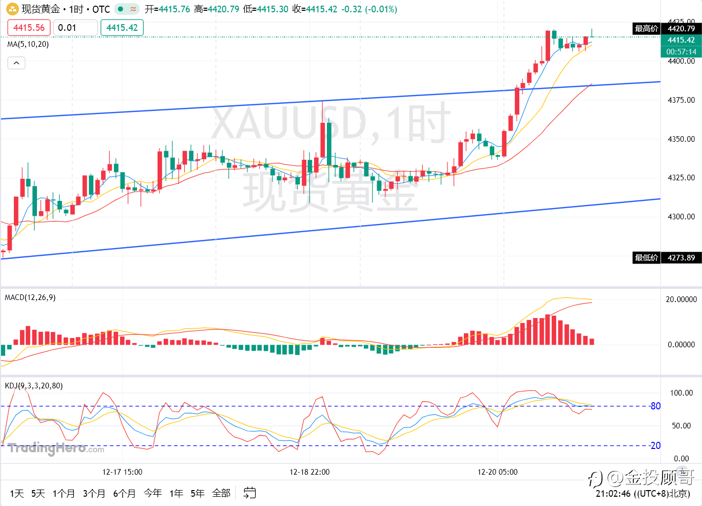 金投顾哥:晚评12月22号黄金午后震荡晚间能否延续上行趋势
