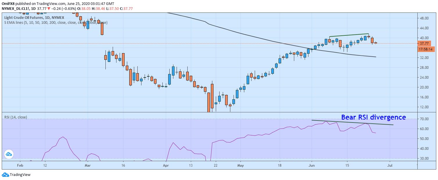 Oil's daily chart shows a bearish reversal pattern.