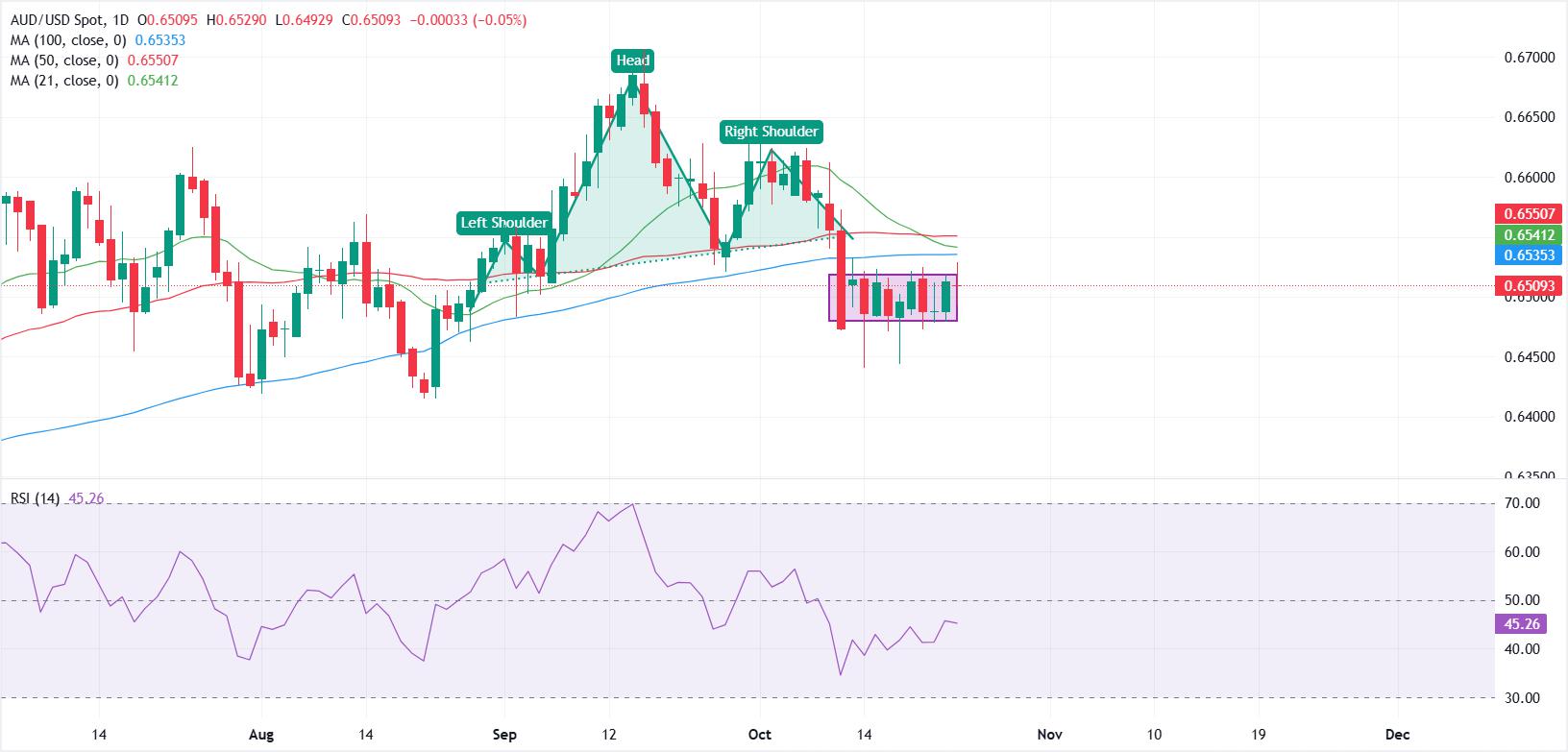 AUD/USD diperdagangkan datar di dekat 0,6510 setelah ayunan volatil yang dipicu oleh rilis data AS.CPI AS yang lebih lemah sementara mengangkat Dolar Australia sebelum kenaikan mereda akibat angka PMI AS yang lebih kuat.Secara teknis, AUD/USD mengonsolidasikan di bawah moving averages kunci, dengan