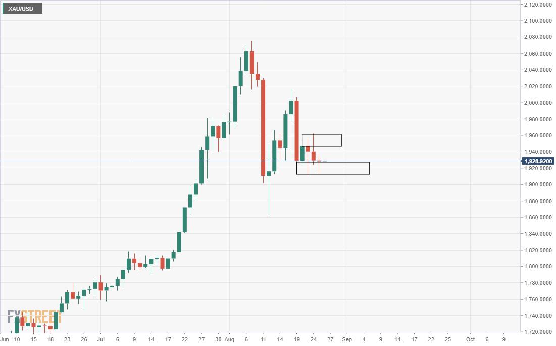 Gold is bounded by daily support and resistance ahead of the Jackson Hole event.