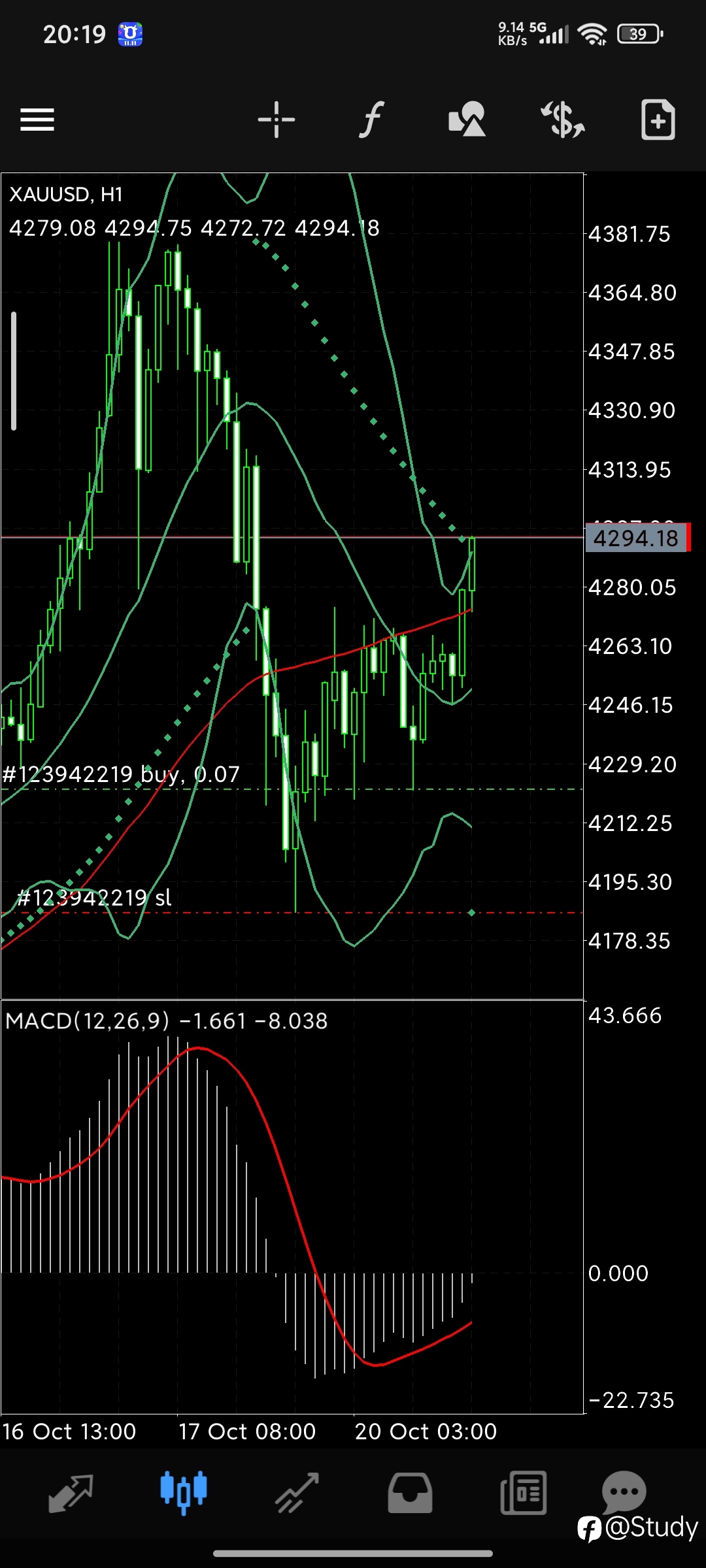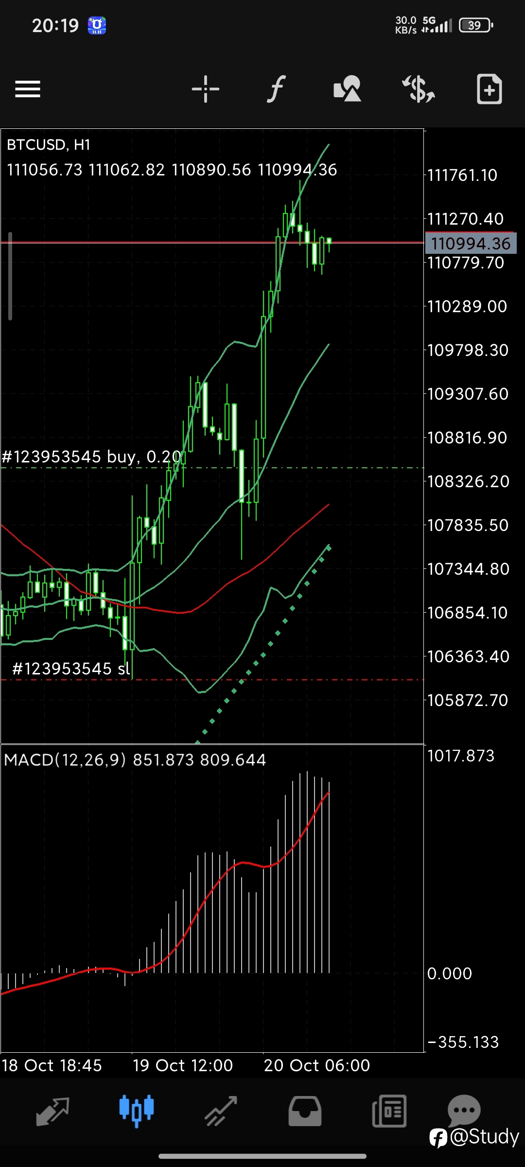 - Study :目前黄金叕创造历史新高,任为多头趋势,没有进场的最好不要追涨,上涨是好事证明多头继续,等待回调结束确认后,进场多单就是