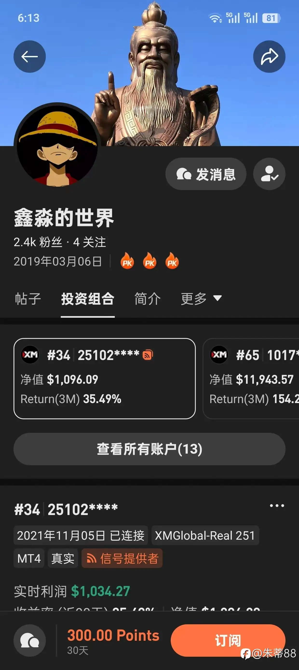 连续7个季度盈利(34号账户)