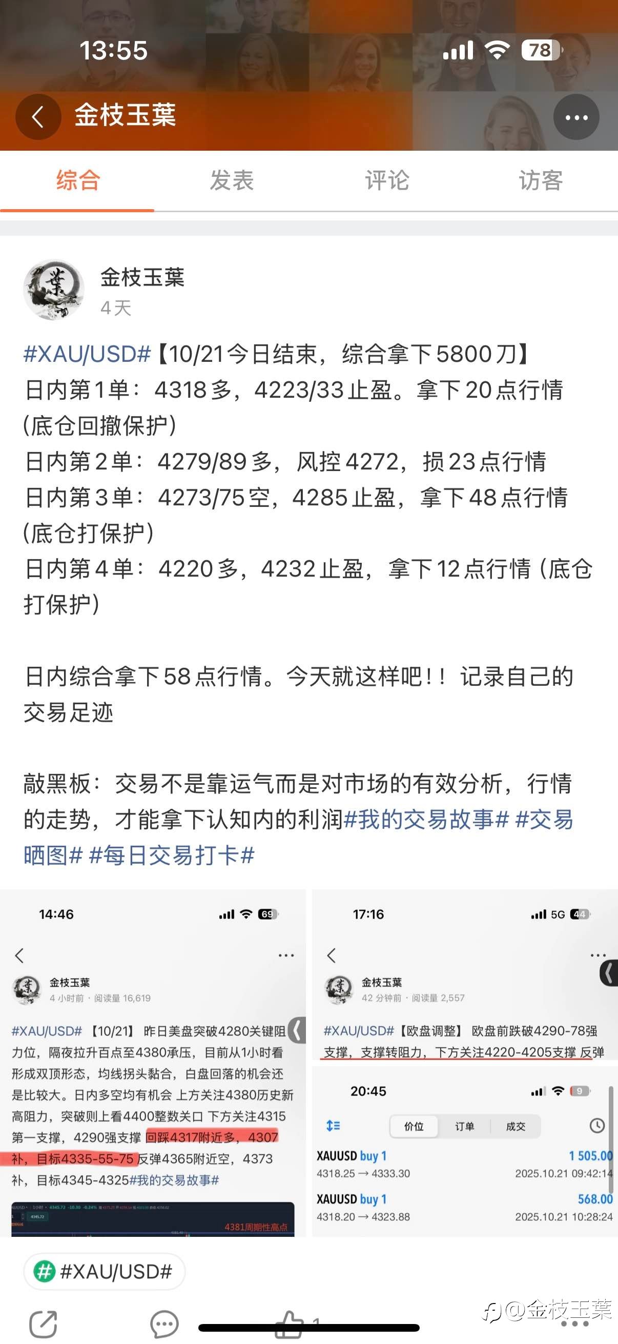 不同的平台价格和收盘时间有差异,会导致日K线数量不一致,比如exness和ic,exness的日k线数量就多余ic的日k线数量,这样导致在通过趋势线确定一些压力位时,就可能出现偏差。昨天,我只看了exness的图表,确定压力位在4218附近,所以做了空单,结果被套了好久,今天下跌时果断保本出局了。现在又认真看了看ic的日k线图,发现这次的重要压力位在4245-4250附近,这与昨天exness平台就有很大的不同。 所以,不管怎么,现在在4245-4250附近做空黄金,值得博弈! 图一是exness的日K线图,图二是ic的日K线图,大家可以仔细对比看看不同之处,图三是我现在做空的单子。