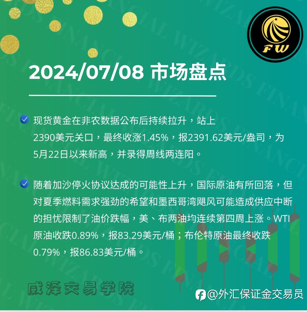 2024/07/08 国际要闻 📍美国6月季调后非农就业人口增长降至20.6万人,前两月数据的就业增长人数下修了11.1万;美国6月失业率意外走高至4.1%。美国利率期货交易员预计美联储9月、12月降息的可能性略有上升。 📍...