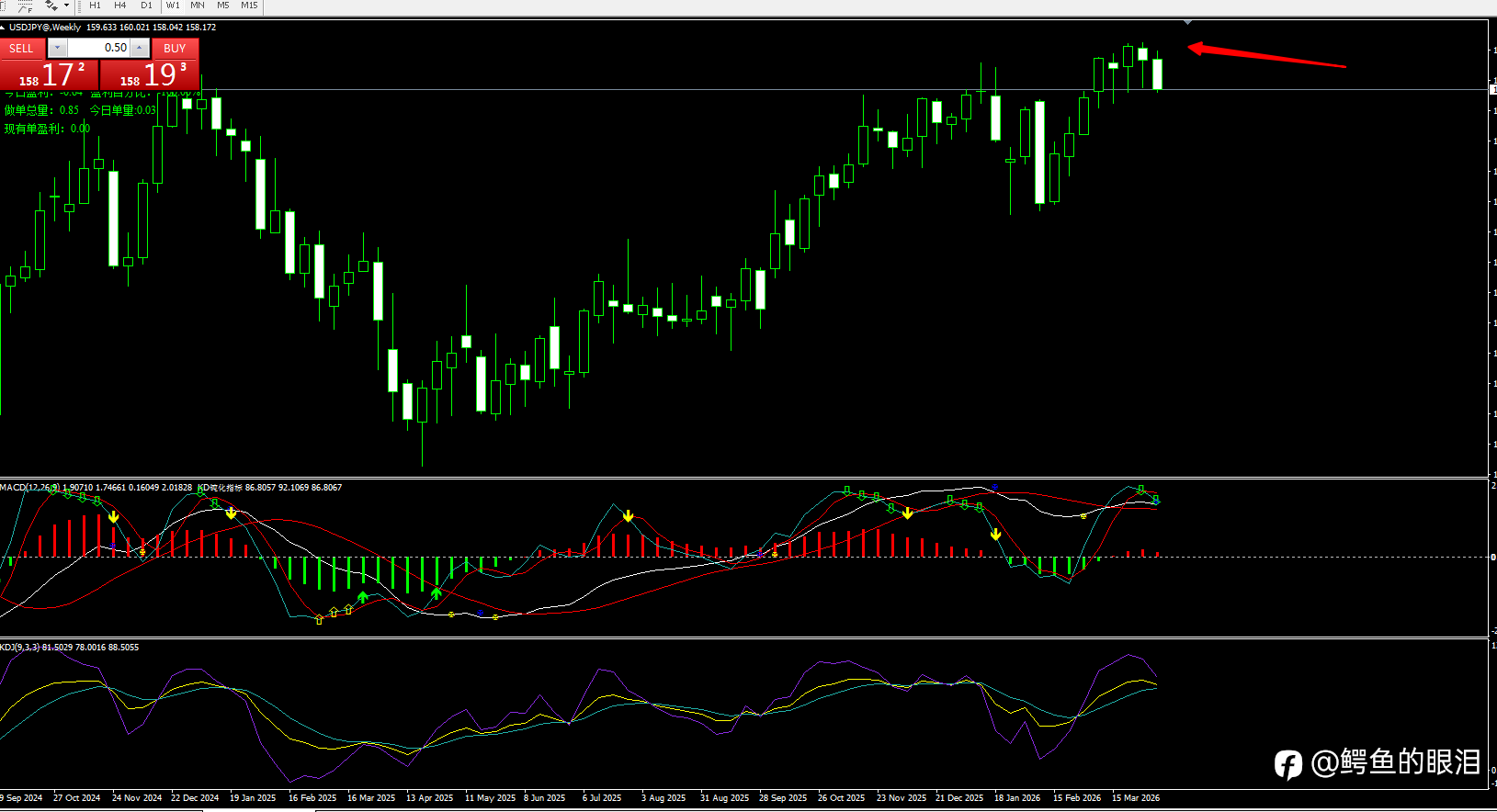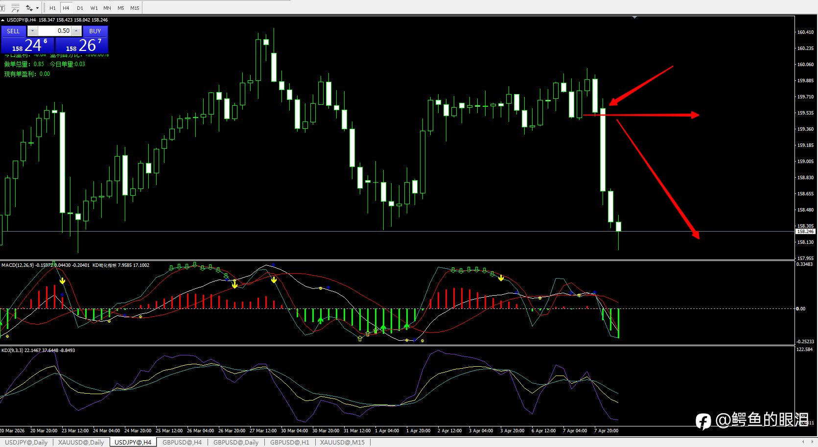 美日 周线上处于多的末期,4小时和日线共振开始走日线回调空,需要注意仓位,美日周线上还处于MACD零上,日线还处于零上,可以耐心等待4小时回调后 进场轻仓做空