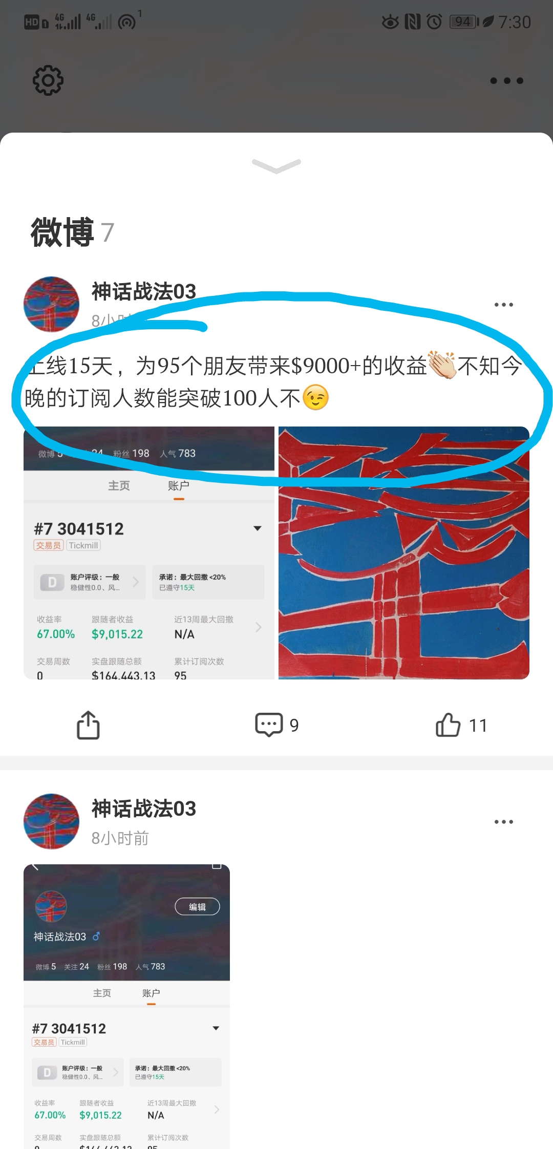 我们之所以取名为“神话战法”自有我们足够神的底气!普罗大众都能...有多位朋友私发消息过问交割单的事,各有各的疑问,在这里我想说的是:朋友,假如你能看懂别人的单子你就是交易高手也用不着跟单了,你说是吗