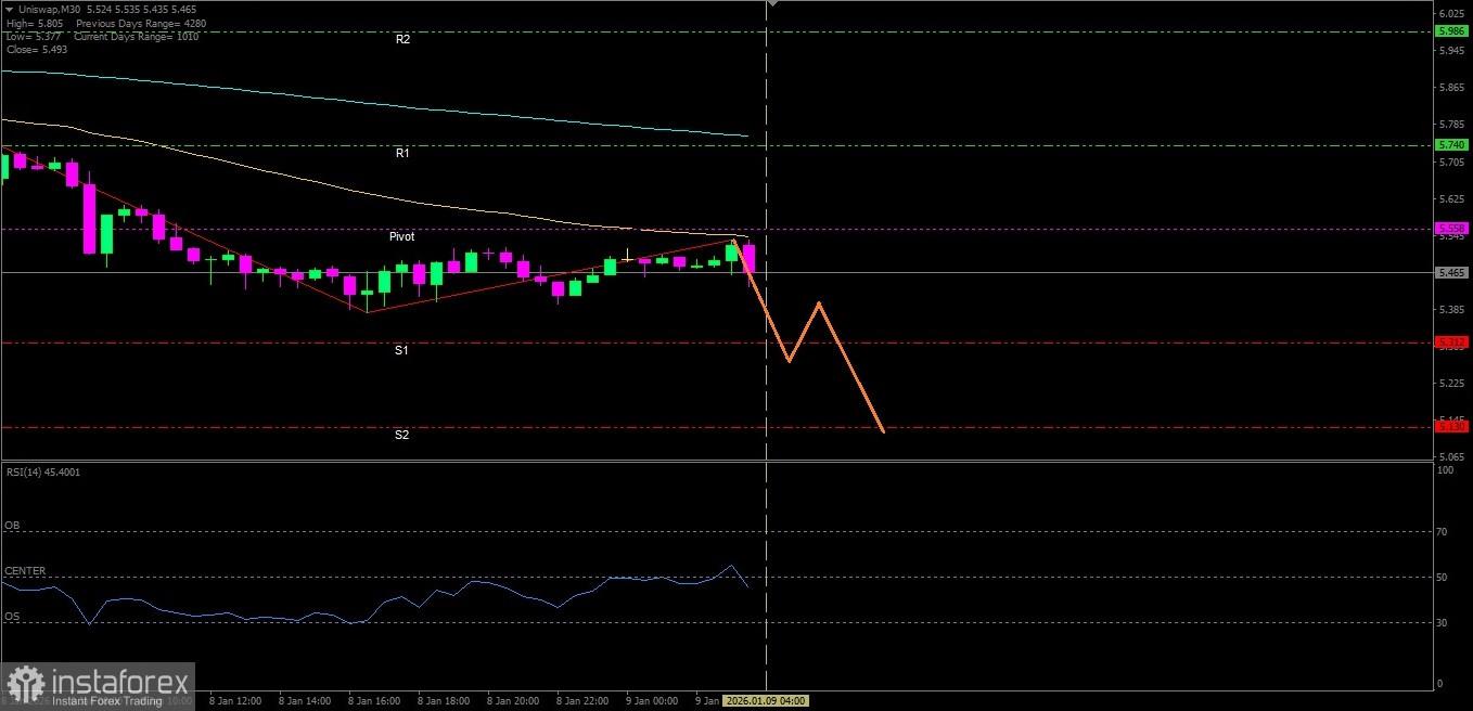 Uniswap hari Jumat 09 Januari 2026 berpeluang untuk tertekan menuju ke level Support terdekatnya