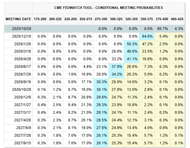 10 月 14 日至 15 日,鲍威尔﹕美联储 10 月或再降息,数据中断加大决策难度;摩根大通执行长戴蒙:在当前环境下,持有部分黄金属理性选择;高盛以人工智能推动流程改革并启动新一轮裁员;摩根大通启动 1.5 兆美元投资计划,强化美国关键产业与经济韧性; OpenAI 与博通签署数十亿美元合作协议。 鲍威尔﹕9 月会议以来经济前景变化有限,或接近结束缩表 10 月 14 日至 15 日,美联储主席鲍威尔表示,目前美国经济状况与 9 月相近,暗示本月底可能再降息 25 个基点,市场对 10 月降息的预期概率接近 100%。他指出,就业市场正在降温,职位空缺减少可能推高失业率,而政府