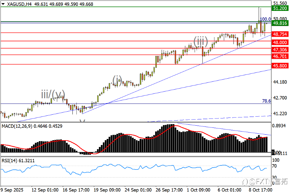 【FXTM富拓】银价破50创名义新高!欧/美趋势性转跌