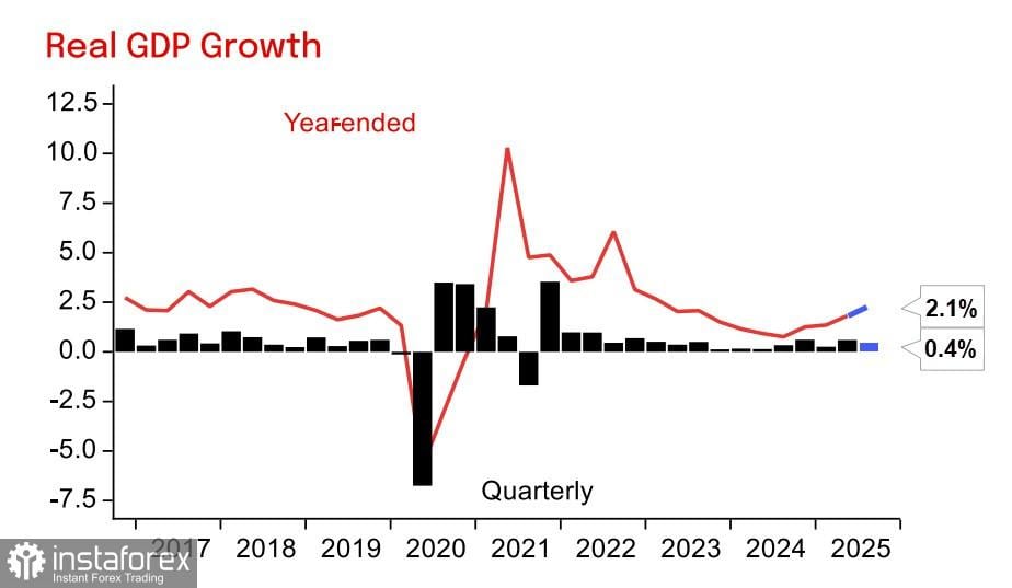 PDB Australia tumbuh sebesar 2,1% year-on-year pada kuartal ketiga, hasil yang sedikit di bawah ekspektasi, tetapi tertinggi dalam dua tahun terakhir. Pertumbuhan ini sedikit lebih lemah daripada prediksi 2,2%, terutama karena perusahaan secara signifikan mengurangi tingkat persediaan mereka, yang m