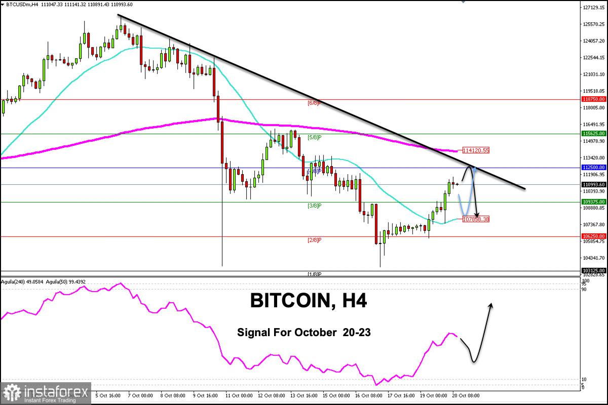 Sinyal Trading untuk BITCOIN pada 20-23 Oktober 2025: jual di bawah $112.500 (21 SMA - 4/8 Murray)