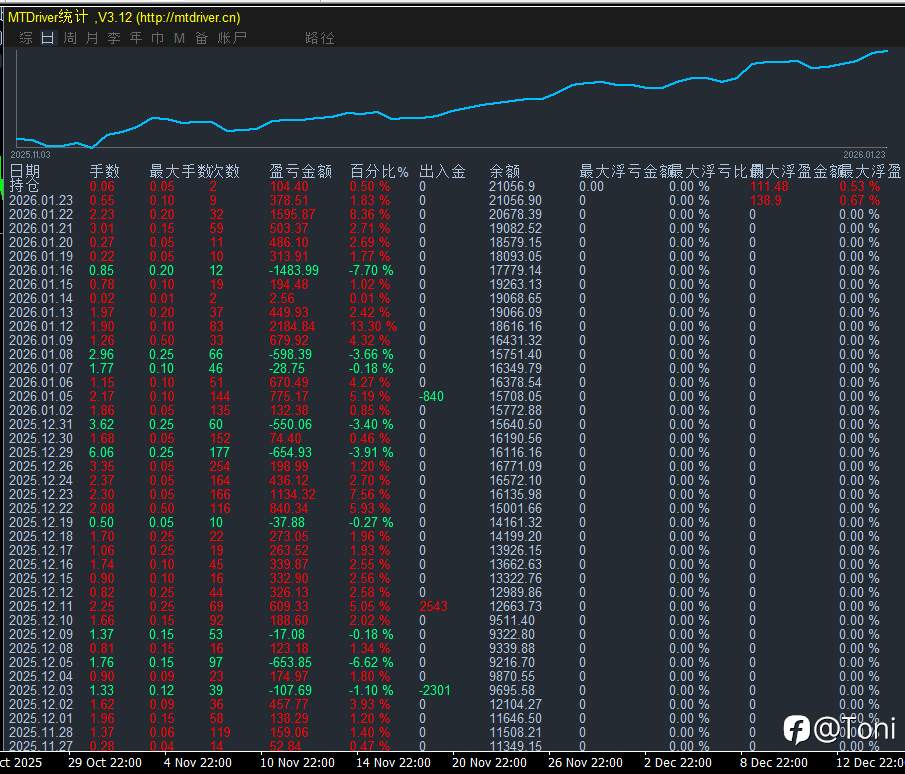 最近一段时间,黄金波动明显, 市场环境对趋势和顺势策略都相对友好。 但在这种阶段, 更容易出现一个问题: 把环境给到的顺利,当成系统已经验证完成。 很多账户真正遇到问题, 并不是在行情最好的时候, 而是在顺风结束、波动放大之后。 所以在顺的时候, 与其急着放大收益, 不如多确认几件事: 当前盈利是否依赖单一环境回撤是否仍在系统可承受范围如果进入震荡,执行是否还能保持稳定 交易没有停, 系统也在继续跑, 只是把节奏放慢了一点。 完整记录已同步在公众号 《退休老头的账本》, 偏账户与长期视角,供参考。 #FOLLOWME交易大赛##我的交易故事#