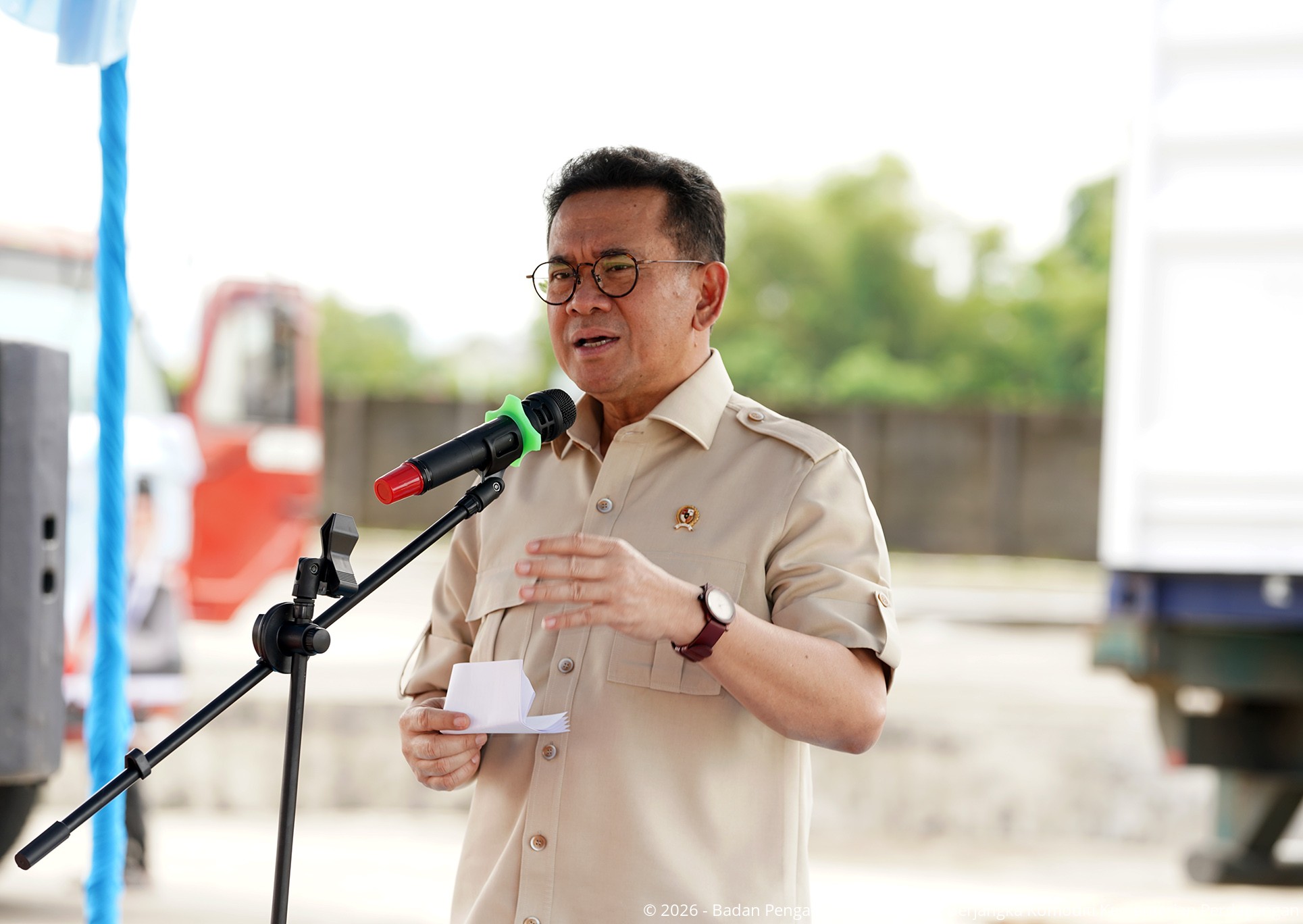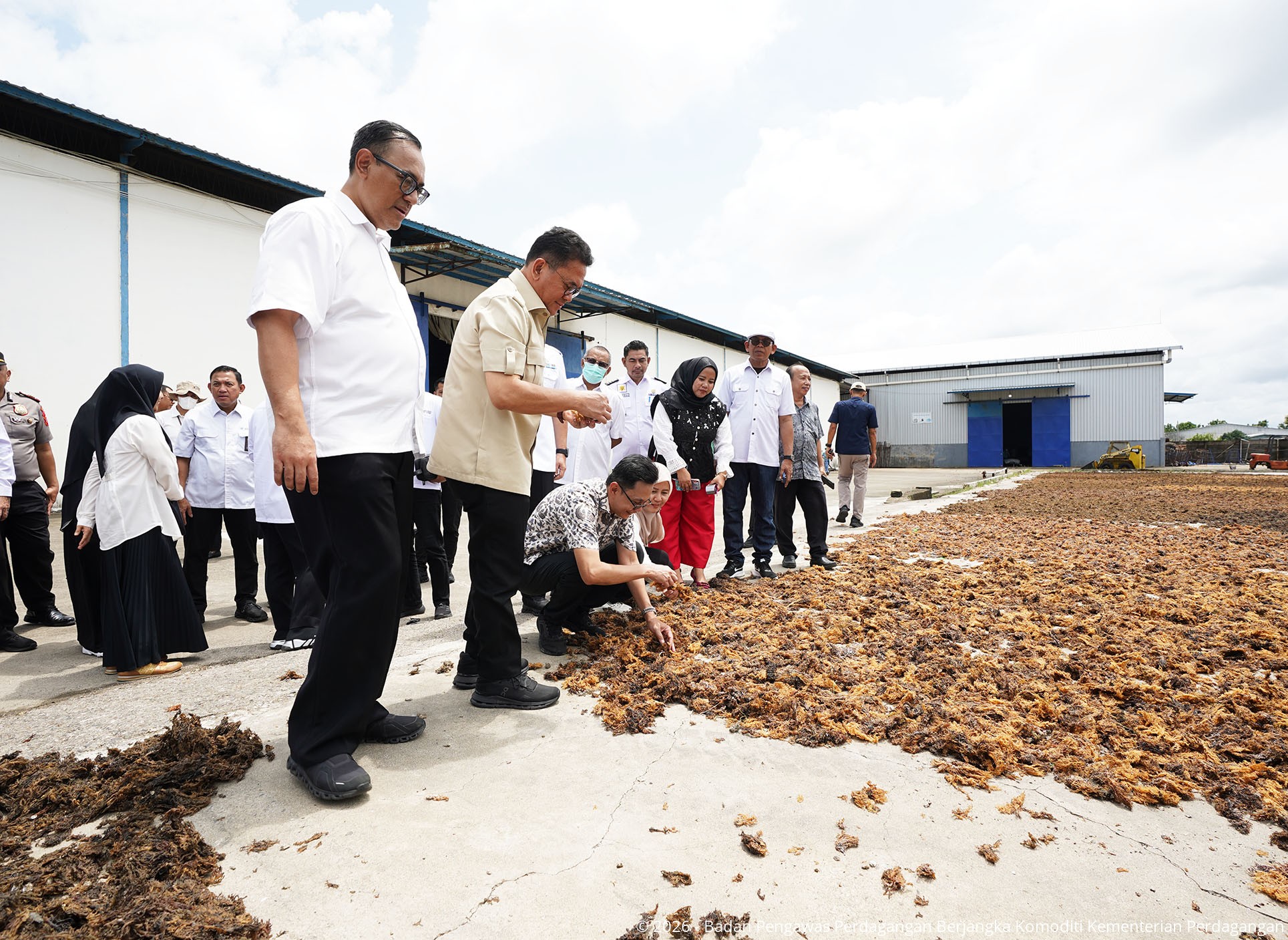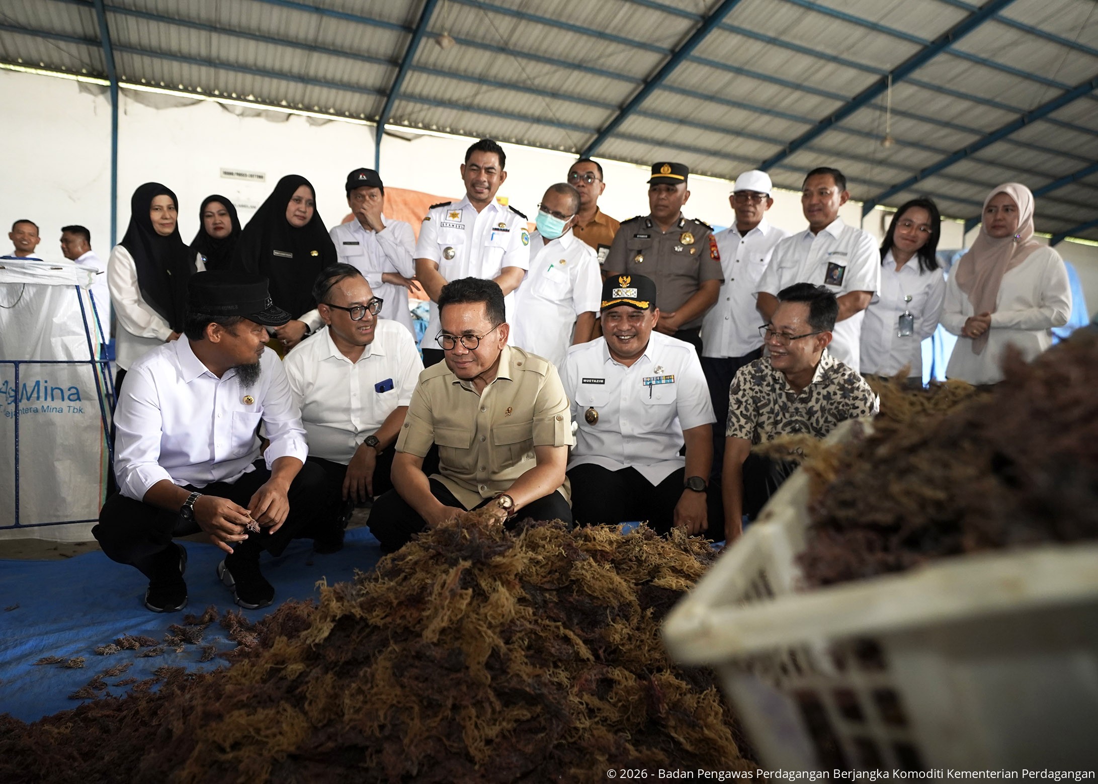 Menteri Perdagangan, Budi Santoso didampingi Kepala Badan Pengawas Perdagangan Berjangka Komoditi (Bappebti), Tirta Karma Senjaya Sekretaris Bappebti, Ivan Fithriyanto serta Kepala Biro Pembinaan dan Pengembangan SRG dan PLK, Diah Sandita Arisanti secara resmi melepas ekspor 75 ton rumput laut jenis