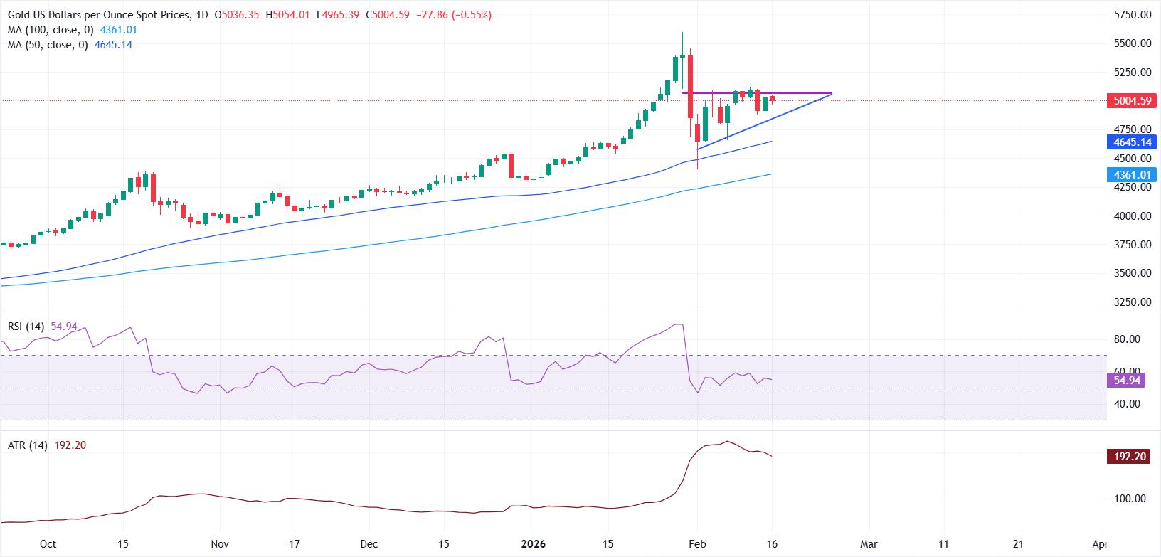 Emas diperdagangkan dengan bias negatif pada hari Senin di tengah fundamental yang bervariasi dan Dolar yang lebih kuat.Inflasi yang lebih lembut dan data pasar tenaga kerja yang tangguh di AS memperkuat ekspektasi untuk lebih dari 50 bp pelonggaran The Fed di akhir tahun ini.Sebuah ascending triang