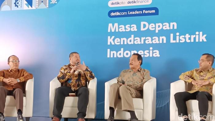 EVP Penjualan dan Pelayanan Pelanggan Retail PLN, Joni (pegang mic).Foto: Ignacio Geordi Oswaldo/detikcom Jakarta PT PLN (Persero) terus mendorong pihak swasta hingga Pemerintah Daerah (Pemda) untuk ikut serta membangun Stasiun Pengisian Kendaraan Listrik Umum (SPKLU). Langkah ini diperlukan dalam m