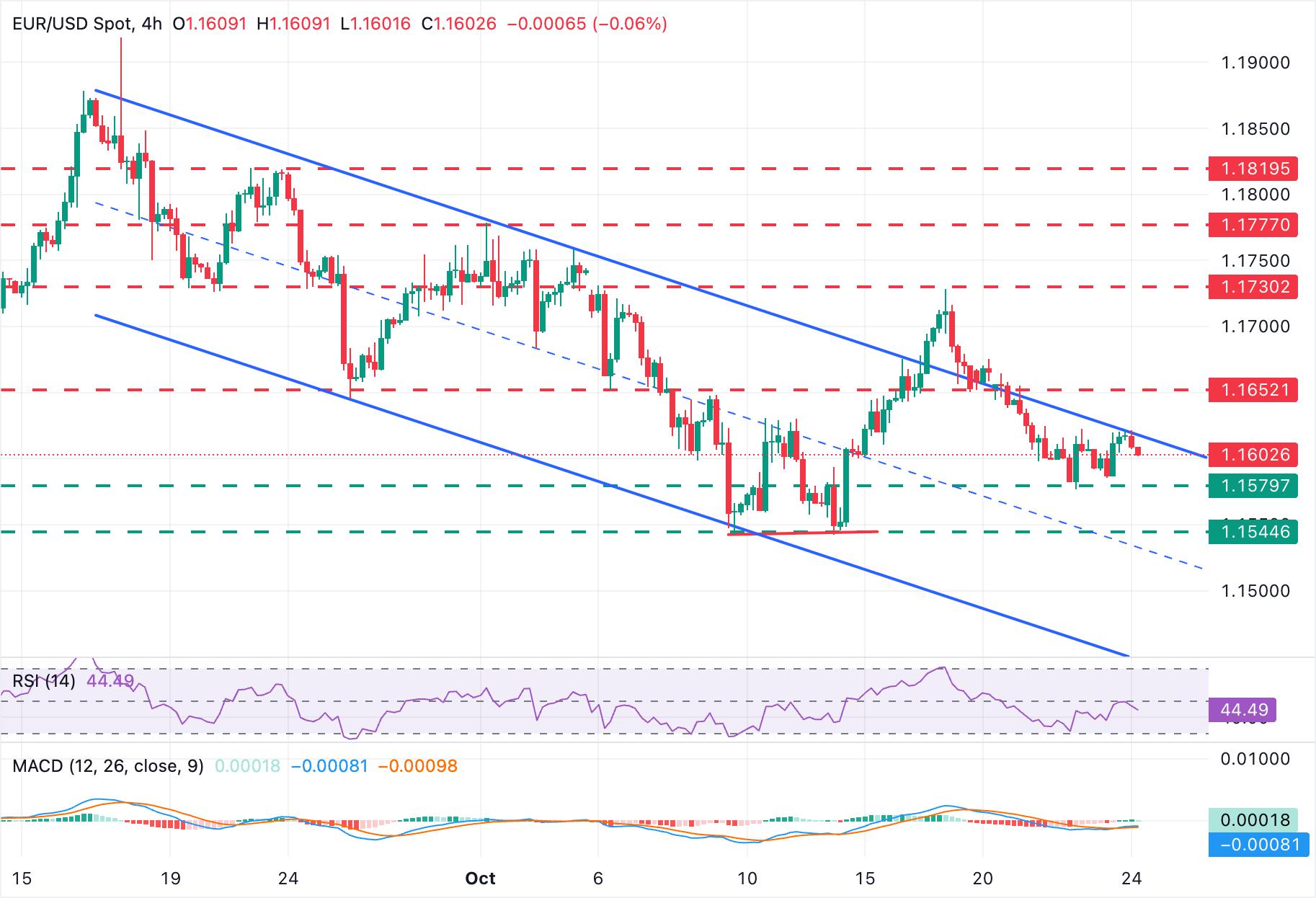 Euro tetap diperdagangkan sideways antara 1,1620 dan 1,1580 terhadap Dolar AS.Angka PMI HCOB Zona Euro diperkirakan menunjukkan aktivitas bisnis yang sedikit lebih lemah di bulan Oktober.IHK tahunan AS diperkirakan akan mempercepat di atas ambang 3% pada bulan September. EUR/USD menunjukkan kerugian