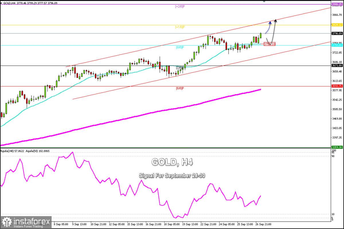 Sinyal Trading untuk EMAS pada 28-30 September 2025: beli di atas $3.790 (8/8 Murray - 21 SMA)