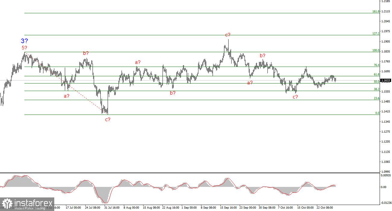 Pola wave pada grafik 4 jam untuk EUR/USD telah direvisi. Sayangnya, tidak menjadi lebih baik. Masih terlalu dini untuk menyimpulkan bahwa bagian tren naik telah berakhir, tetapi penurunan terbaru pada euro memerlukan penyesuaian struktur wave. Pada tahap ini, kita dapat melihat serangkaian struktur