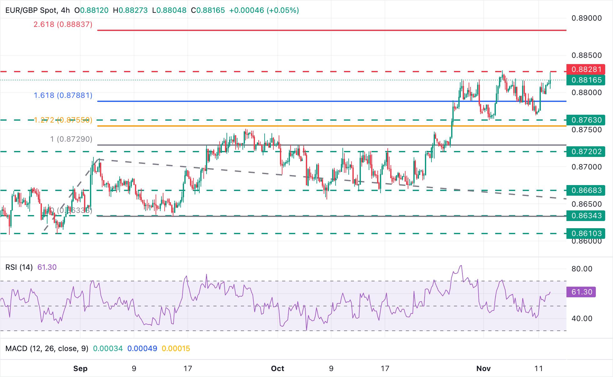 Prakiraan Harga EUR/GBP: Pembeli Uji Tertinggi Tahun Berjalan Dekat 0,8830 di Tengah Pelemahan Pound