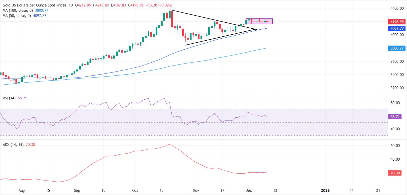 Emas berada di bawah tekanan moderat saat para pedagang tetap berhati-hati menjelang keputusan suku bunga Federal Reserve pada pukul 19:00 GMT.Pasar mematok penurunan 25 bp, meskipun spekulasi tentang nada hawkish mengangkat imbal hasil Treasury AS dan menekan XAU/USD.Pengaturan teknis tetap konstru