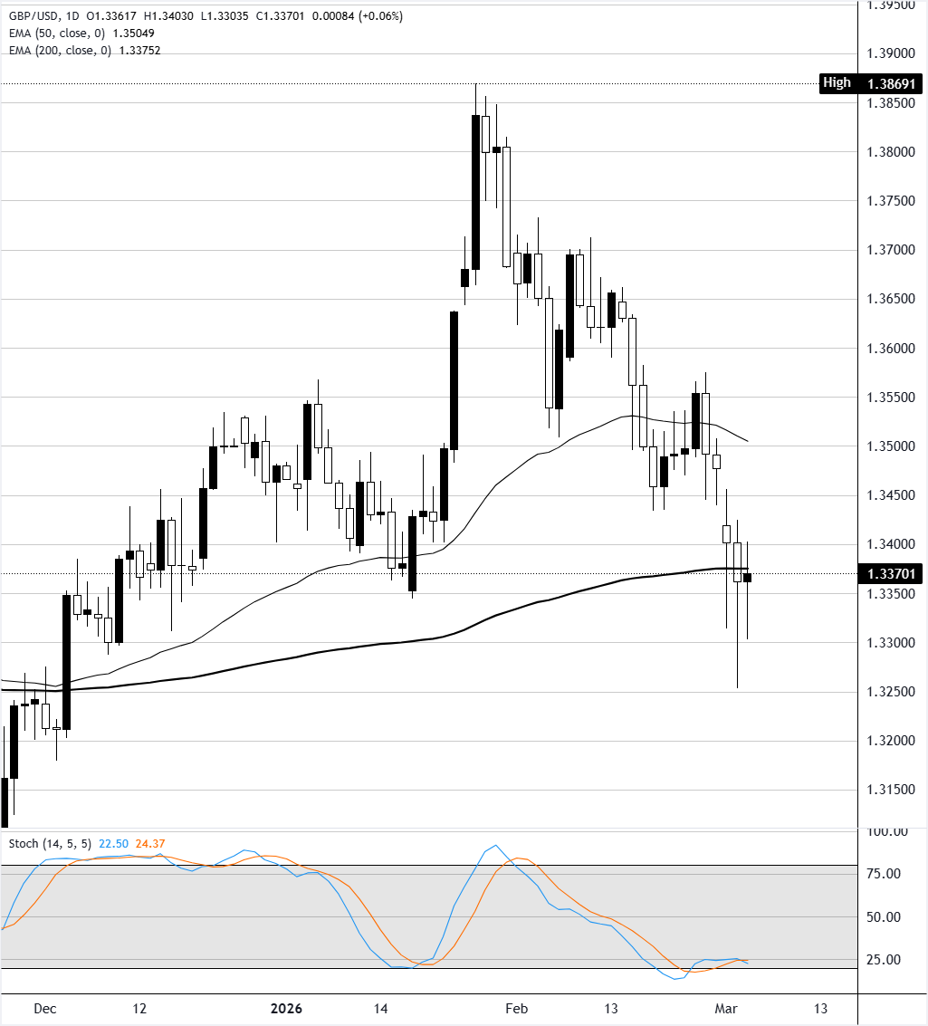 Đồng bảng Anh bám sát đường EMA 200 ngày quanh mức 1.3380 trong bối cảnh triển vọng tăng trưởng của Anh yếu hơn và đồng đô la Mỹ mạnh lên trên diện rộng.Văn phòng Ngân sách trung ương Anh (OBR) đã hạ dự báo tăng trưởng của Anh năm 2026 xuống 1.1% từ mức 1.4% trong bản cập nhật Tuyên bố Mùa xuân, với