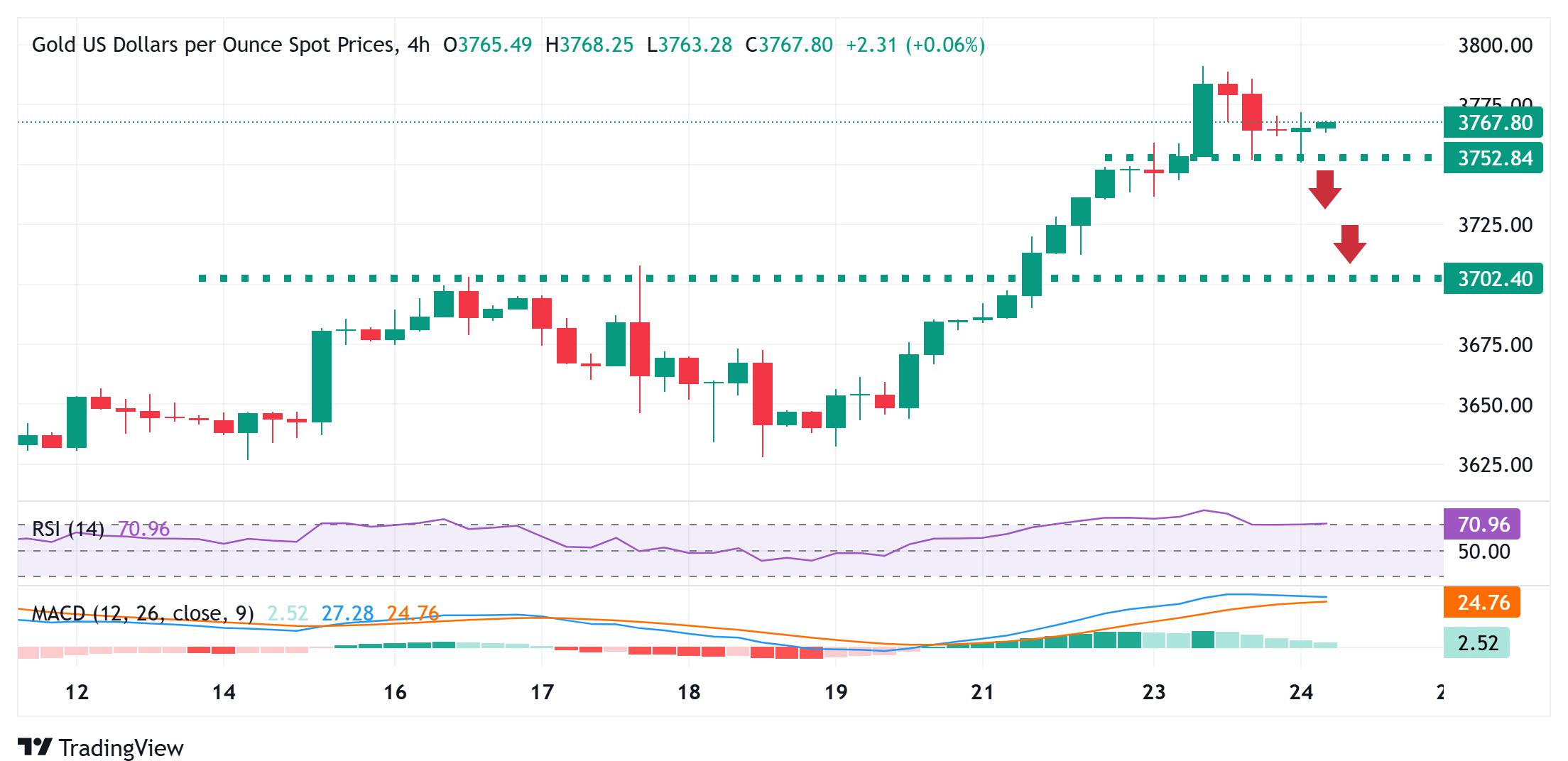 Emas menarik pembeli turun pada hari Rabu dan menghentikan penarikan semalam dari puncak sepanjang masa.Taruhan penurunan suku bunga The Fed dan ketidakpastian geopolitik terus menjadi pendorong bagi logam mulia ini.Kenaikan USD yang moderat mungkin membatasi kenaikan untuk pasangan XAU/USD di tenga