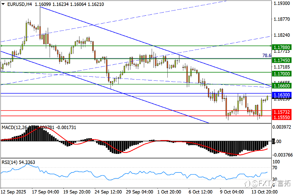 NO.1 欧元/美元 (EUR/USD) –回升上看跌势阻力,短期小双底隐现 日线图看,鲍威尔隔夜讲话为月底降息敞开大门,非美纷纷脱离近期低位。欧/美持续固守此前提示的1.1573(4月高点/8月下旬低点镜像位)-1.1555(7月17日低点)一带支撑。汇价重心上移后,已逐渐贴近4周跌势上轨和6月12日高位1.1630一带阻力。一并攻破即可挣脱现有颓势,紧接着收复9月11日低点1.1660(即9月头肩顶颈线)强阻将进一步站稳脚跟,往上进而瞄准8月7日高点1.1700。不过目前震荡指标仍处弱势,而且MACD和RSI还双双呈现中期顶背离状态。 4小时图看,欧/美过去一周在上述支撑上方形