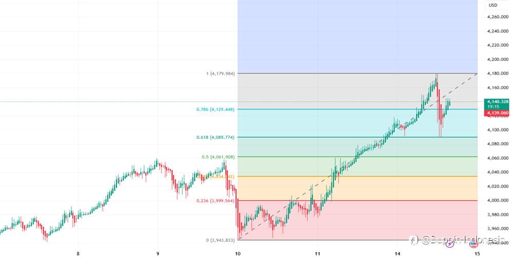 Trend : Bullish | Timeframe 30m Fundamental Yang Solid Menguatkan Harga Emas Emas mampu bertahan di atas $4.100 per troy ons, bahkan kembali mencetak rekor tertinggi baru di $4179. Kuatnya fundamental menjadi sumber keyakinan dari Bank of America yang memperkirakan harga emas di tahun 2026 dapat men