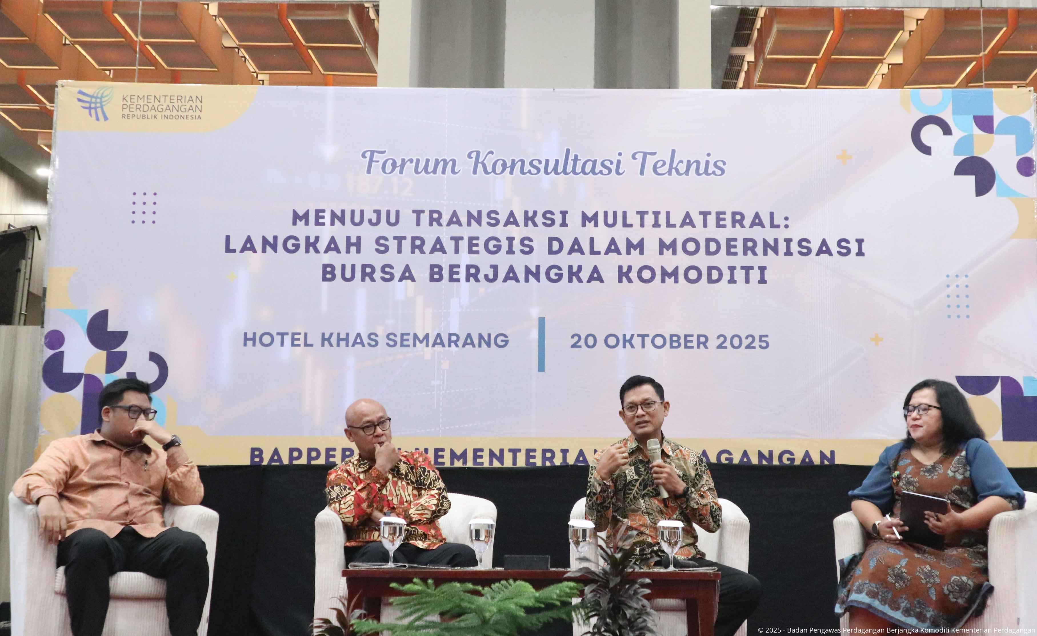 Badan Pengawas Perdagangan Berjangka Komoditi (Bappebti) Kementerian Perdagangan menyelenggarakan Forum Konsultasi Teknis Pelaku Usaha Perdagangan Berjangka Komoditi (PBK) kepada para pelaku usaha PBK di Hotel Khas Semarang, Senin (20/10).