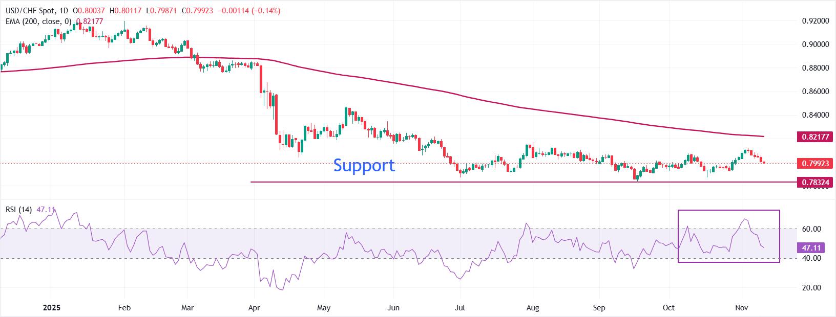 USD/CHF turun lebih lanjut mendekati 0,7990 seiring Franc Swiss mengungguli rekan-rekannya.SNB kemungkinan tidak akan mendorong suku bunga ke wilayah negatif.Indeks Dolar AS menguat setelah mencapai terendah mingguan di sekitar 99,30 pada hari Selasa. Pasangan USD/CHF melanjutkan penurunannya untuk