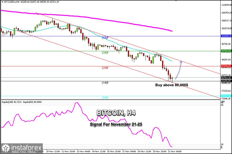 Sinyal Trading untuk BITCOIN pada 21-25 November 2025: beli di atas $80.000 (pantulan - 1/8 Murray)