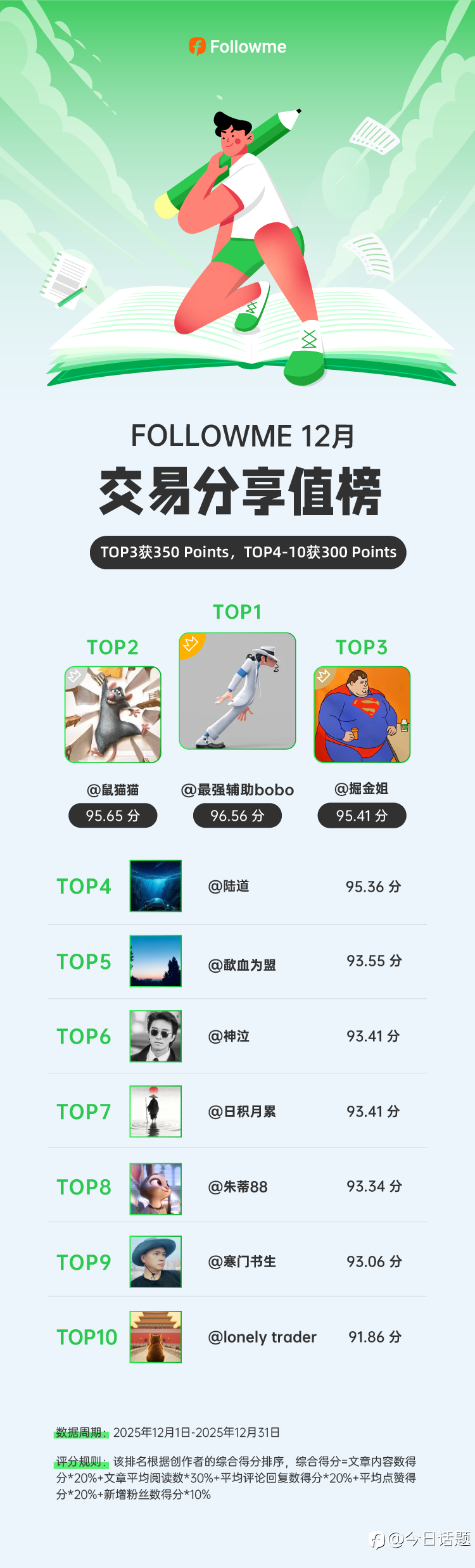 感谢各位小伙伴的热情参与!本期打卡奖励公示如下: 奖励将于近日安排发放到账,敬请查收。 ——————原文分割线—————— #每日交易打卡# 活动(07)期启动,每日在社区分享交易订单、心得体会、或社区比赛战绩,即可获得社区Points奖励! 一起培养每日关注交易的习惯,快快点击→#每日交易打卡# 参与 01 活动时间 2025年12月04日~2025年12月18日23:59:59
