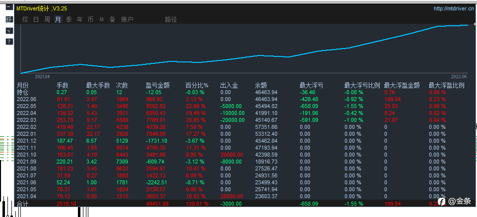 一款非常稳定且风险超低的货币策略 已安全运行了15个月 按月统计目前没有出现过任何回撤 一万美金起跟 有想法咨询看观M