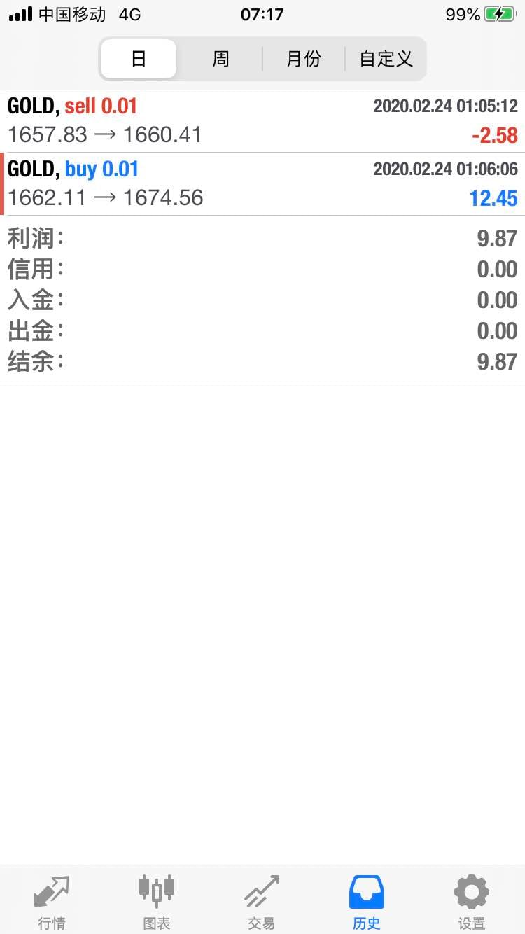操作第六天,一天一倍,每成功三次加仓一倍。不知能走多远。 看到大神几美元操作到五千多,且仅仅两天时间,真的很受打击!自己这样的坚持比起来太渺小了!是否自己要求太低了?还是贪念作怪?