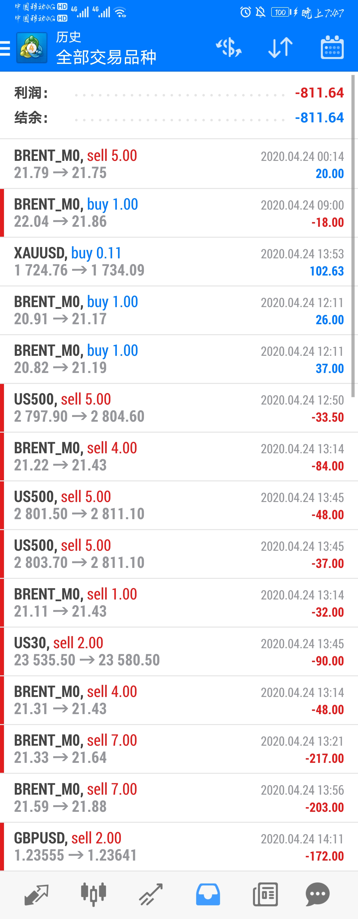周一开始就觉得别扭,利润全出金了,结果就是盈利一千多不平,打保护了,然后又是盈利一千多不平,反而亏损了,然后就是一路亏……招了邪了,居然会一直做下去,死活想不明白...