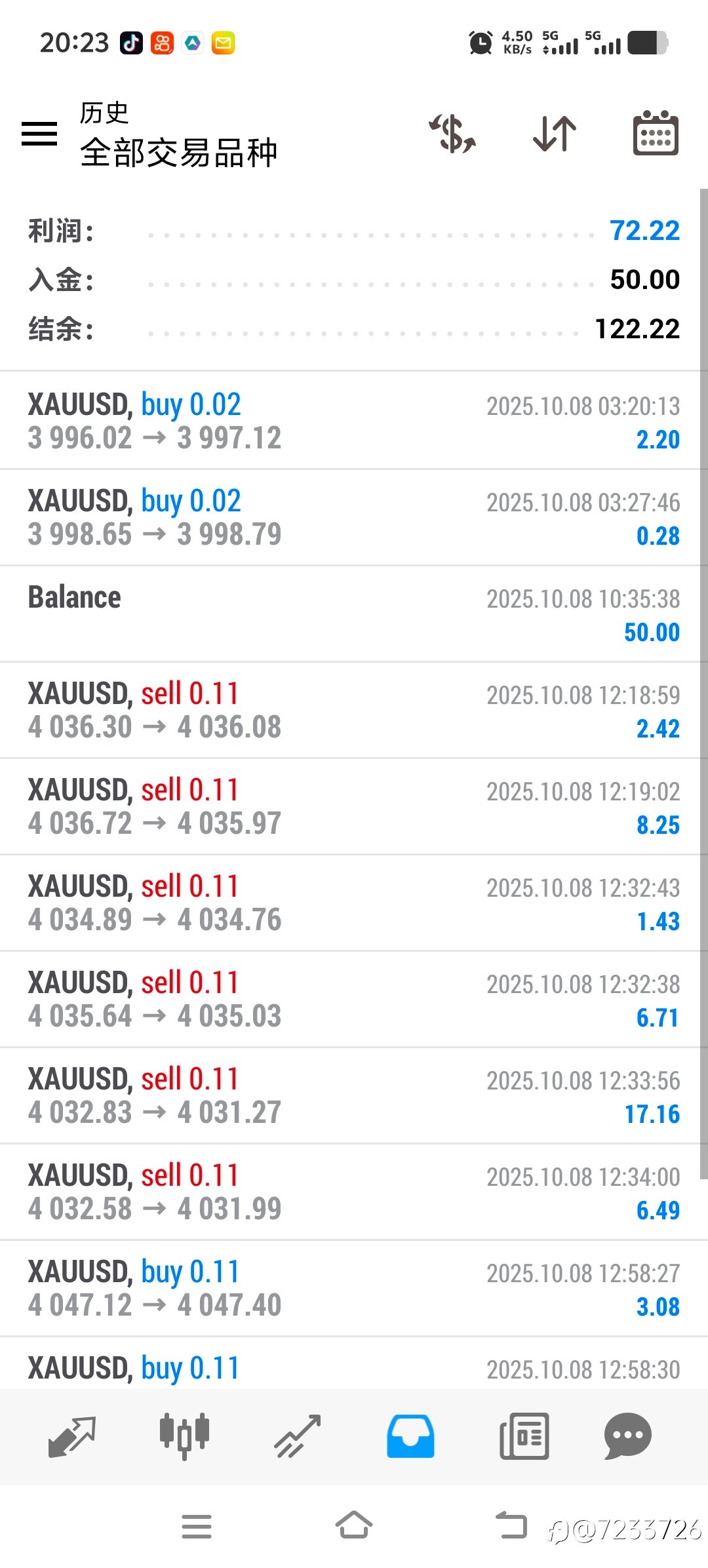 两年前我还有伟大抱负,希望如何如何,外汇只是我赚钱的一种工具,一个手段,当时的交易频次,交易风格非常极端。 经常性一天从一两百美金做到四五千,一周内做到一两万,然后爆仓,当时没做到五万美金从来不取款。 慢慢的就心力憔悴了,资金也枯竭了,每次入金虽然不多,一两百,基本没有超过一千的本金入金。 在往后,生活的压力越来越大,中间间隔了半年没做交易,赚钱去了,后面赚了钱,回过头来再做交易,终于学聪明了,盈利出金,就这样,2024年居然也出金了大概3万美金。 然后再做就是2025年年初了,运气非常好,年初我事业上两个月赚了一年的钱,有个20左右吧,然后这次入金稍微大一点了,每次大概是一千两