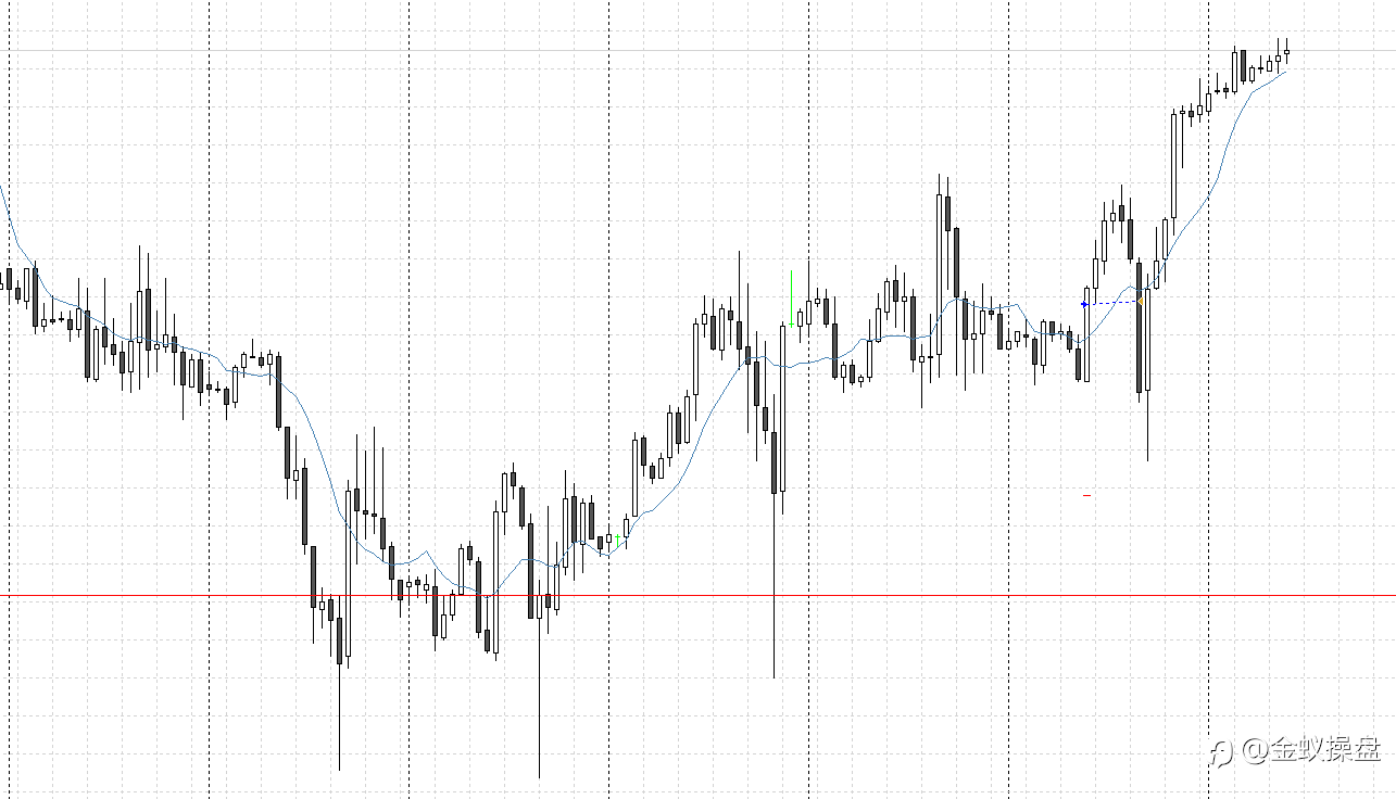 一段明确的趋势行情在没有彻底被证明翻转之前,所有的逆势交易都将是火中取栗,唯有等待回调之后再次顺势交易才是具有一致性和正确的交易动作。本文想要阐明的是趋势明朗时如何进行二次入场或顺势交易的问题。 所谓顺势交易或二次进场,首先要明确当下日线级别是什么势。技术分析方法千千万万种,其实不必搞得那么复杂。打开日线行情看一眼,最近行情涨的就是涨的,跌的就是跌的,如果还是看不明白那就当做震荡不做也可以。当然这会儿我不是要说怎么去分析行情的趋势方向,而是想要先做一个定势的动作之后,才能进入本文的主题“趋势延续中的再次进场”。 以今年7-8月的黄金下跌势为例。日线一段下跌趋势中,如果不