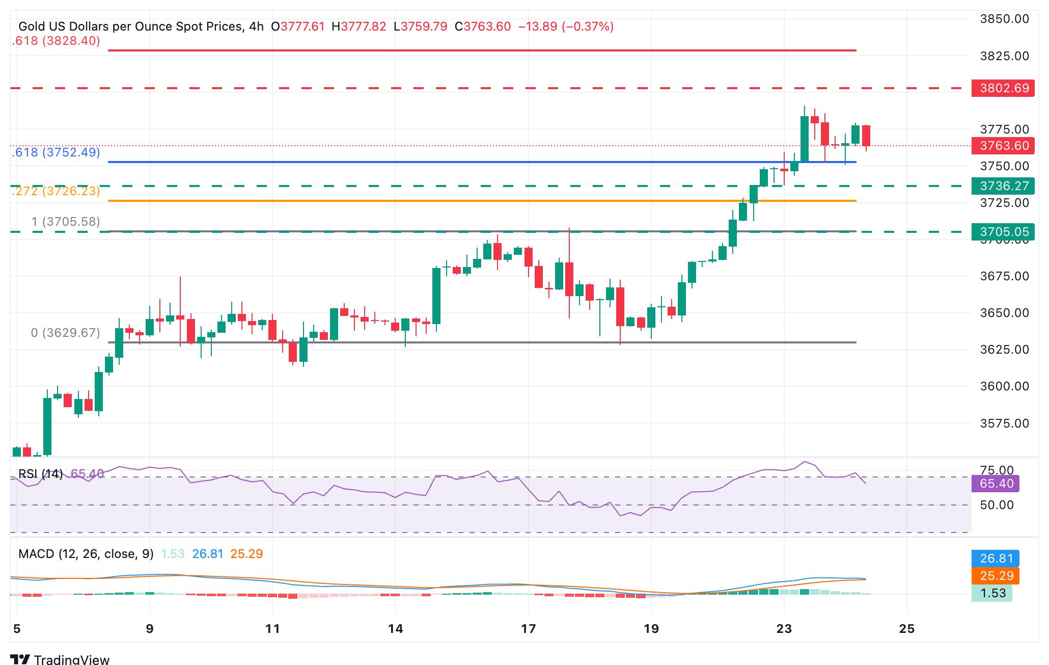 Gold ticks down from all-time highs, at $3,790, weighed by a stronger US Dollar.Fed Powell affirmed that the central bank will move slowly with rate cuts.XAU/USD seems ready for a bearish correction after having rallied 15% from mid-August lows. Gold is trading with moderate losses on Wednesday, sna