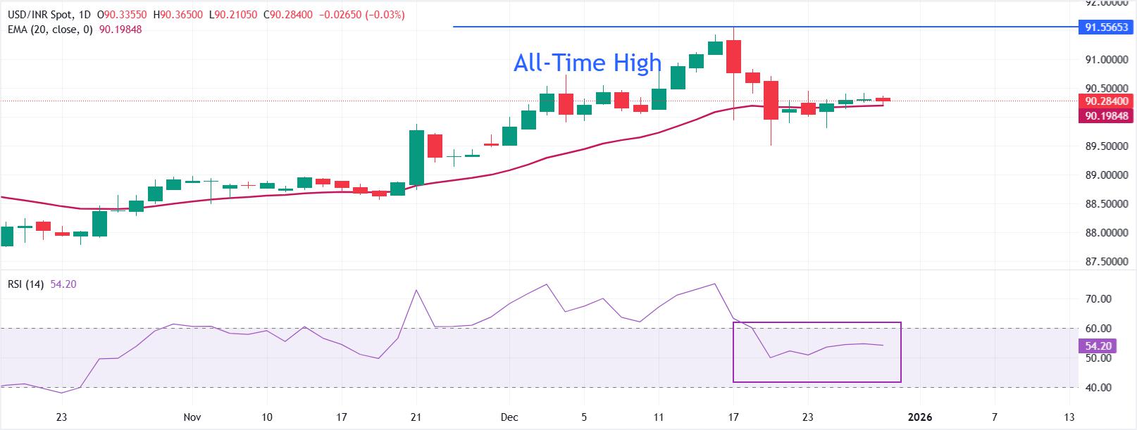 USD/INR ổn định trong khi triển vọng vẫn lạc quan do việc bán ra liên tục của các nhà đầu tư nước ngoài (FIIs)