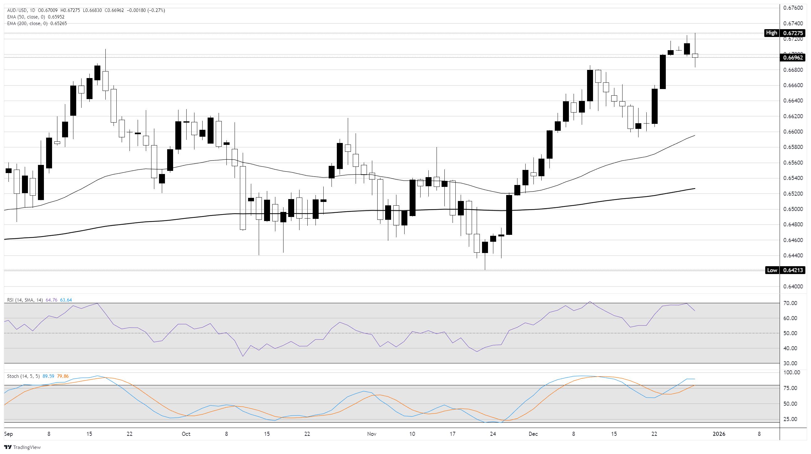 AUD/USD đã chấm dứt đợt tăng giá ngắn hạn vào thứ Hai, lùi lại dưới mức 0,6700.Khối lượng giao dịch cuối năm giảm đã khiến dòng chảy thị trường Úc gặp khó khăn gần các mức quan trọng.Biên bản cuộc họp Fed mới nhất là điểm tập trung duy nhất cho những người theo dõi dữ liệu. AUD/USD đã giảm khi mở đầ