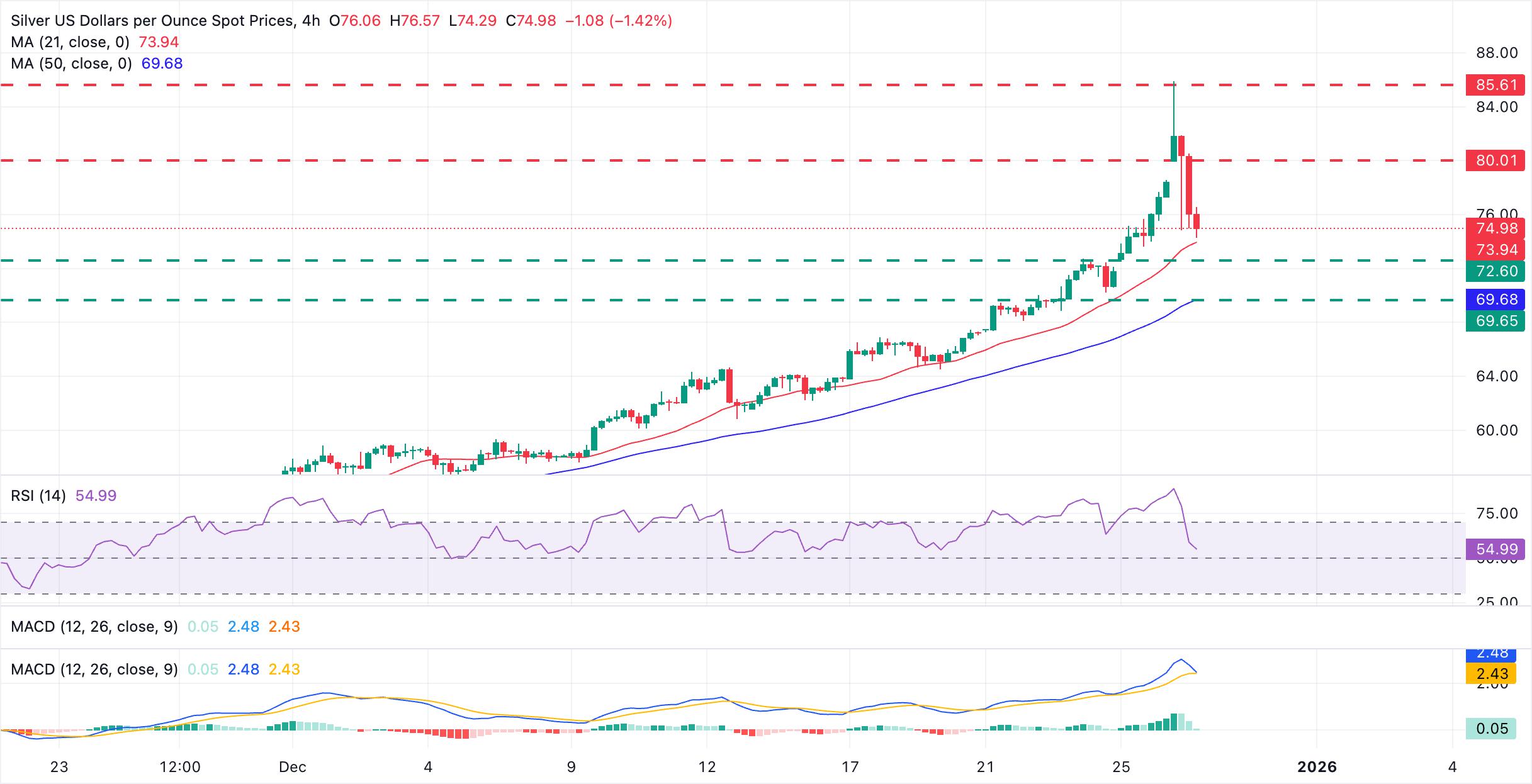 Dự báo giá bạc: XAG/USD giảm xuống dưới 75,00$ sau cuộc gặp giữa Trump và Zelenkyy