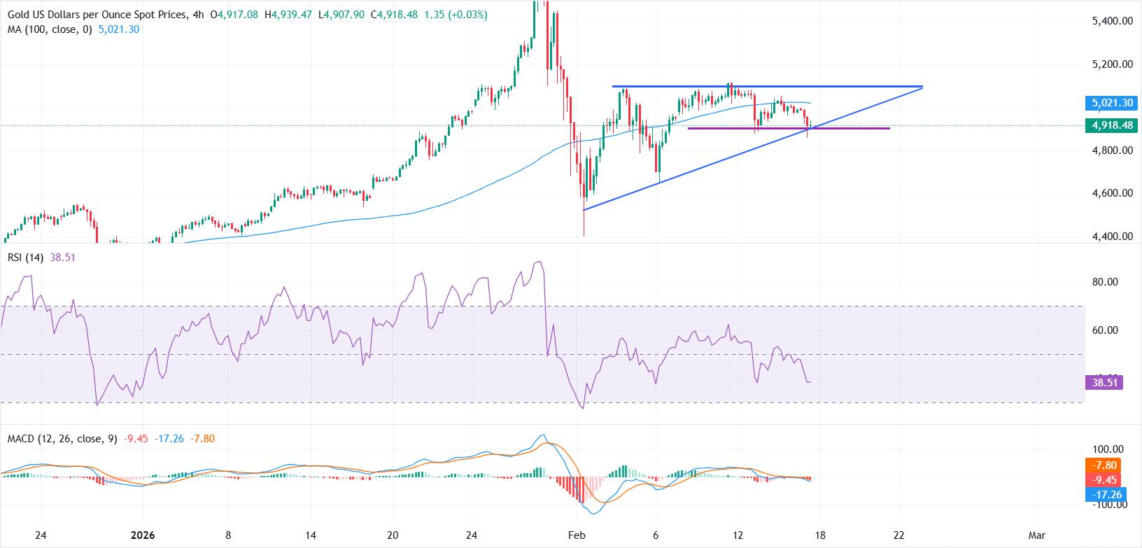 Emas diperdagangkan di bawah tekanan pada hari Selasa, melayang di bawah level $5.000 di tengah likuiditas yang tipis.Ketegangan geopolitik seputar pembicaraan AS-Iran memberikan dukungan yang mendasari.Secara teknis, XAU/USD menguji support krusial saat melemah di bawah 100-SMA pada grafik 4-jam. E