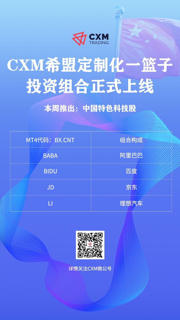 尊敬的CXM客户: 您好!非常荣幸地通知您,CXM希盟即将推出全新系列产品:CXM希盟定制化一篮子投资组合! 为了提升广大客户的交易体验,优化客户的投资流程,CXM希盟特别研制开发了全新系列产品——CXM希盟定制化一篮子投资组合,该产品形式为行业内首创,希望可以给大家带来崭新的交易体验。 该系列的每个产品,均为由CXM希盟精心挑选搭配的多个个股组成的投资组合,即为“一个篮子”,每个篮子都有其独特之处,并采用统一的MT4符号,客户可以直接选取符合自己喜好的篮子进行交易,极大优化了客户的选股流程,让交易更便捷! 本周三(9月15日)我们将推出该系列的第一个产品:CXM China Basket(M