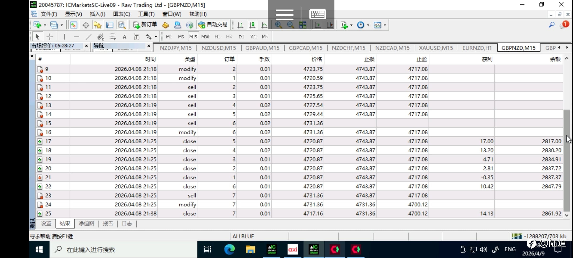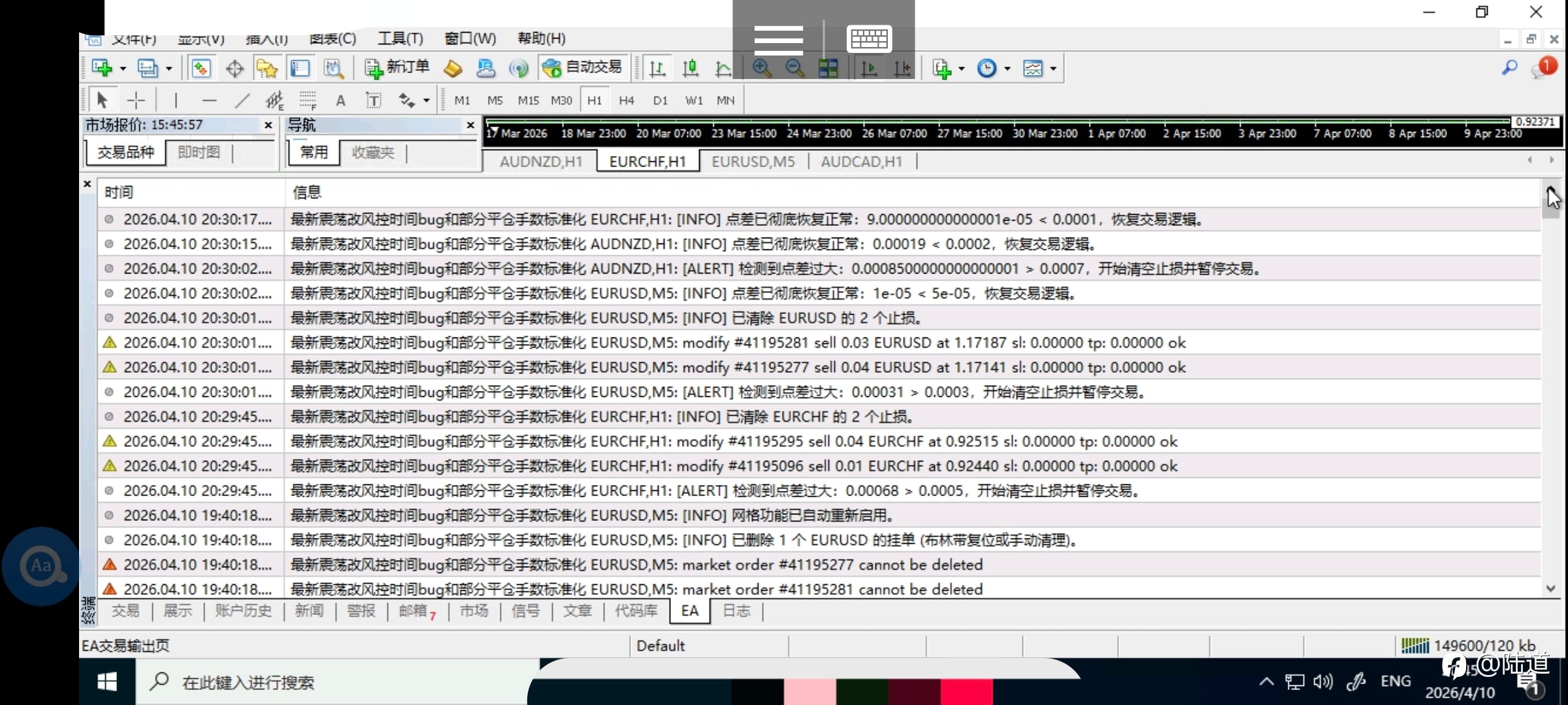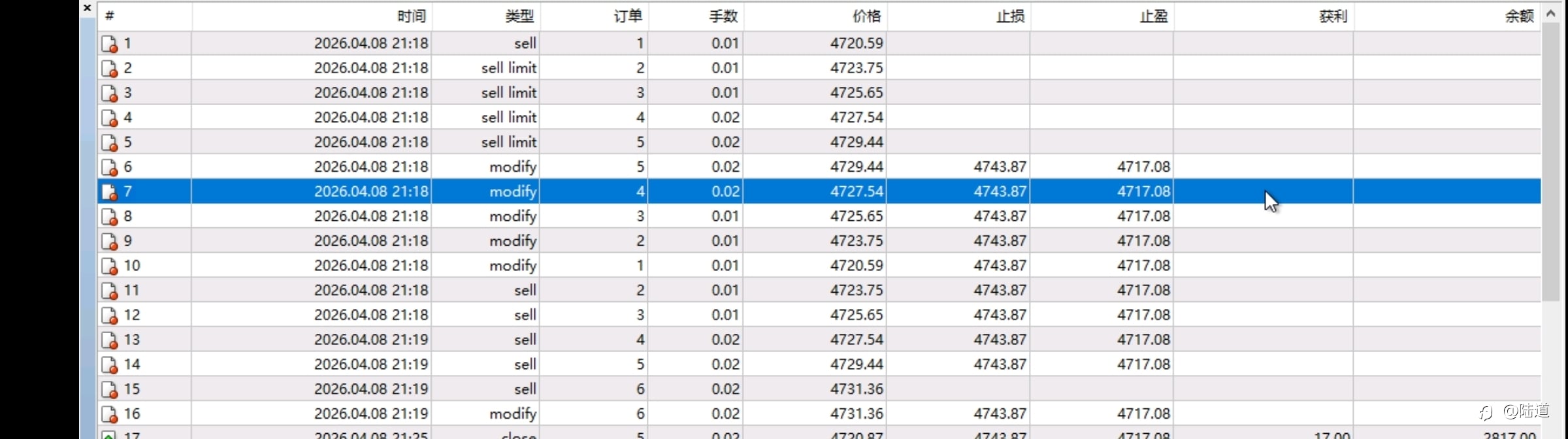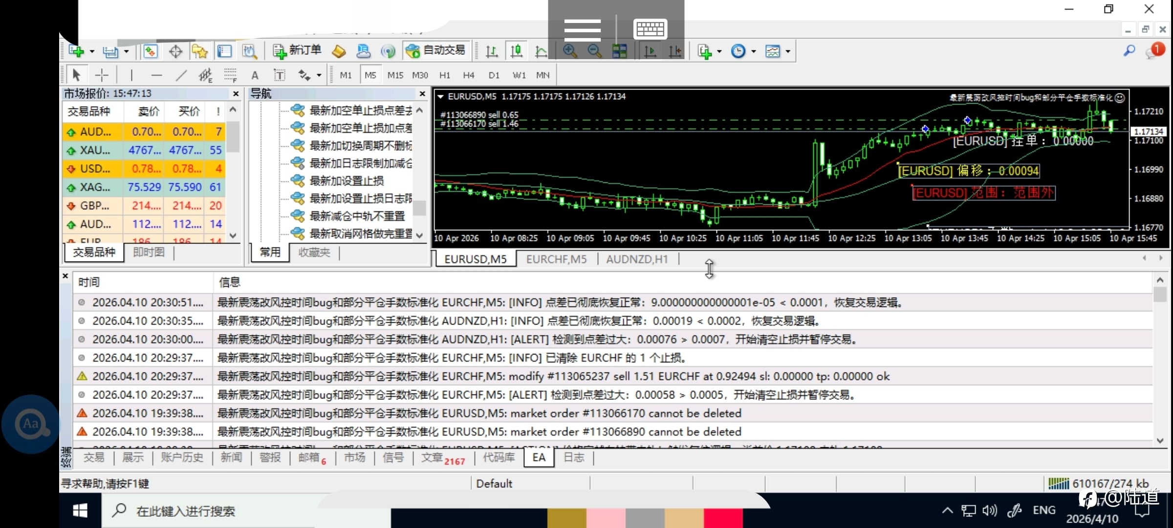 以下是需要扛单浮亏百分之10+的行情记录 以ic平台时间为准。 2025.4.20 XAUUSD SELL 2025.5.20 GBPNZD SELL 2025.8.7 AUDUSD BUY 2025.10.20 AUDJPY BUY 2025.10.21 CADJPY BUY 2026.2.11 EURJPY SELL 2026.2.23 NZDUSD BUY 2026.3.17 GBPNZD BUY 2020到2025年,五年的记录加起来,没有这一年的多。说明一个问题,时代真的变了。 现在饱受扛单折磨以后,还赚不到钱的次数正在飞速增加。本来想ea继续再征战五年。现在怕是难于上青天了。这篇文