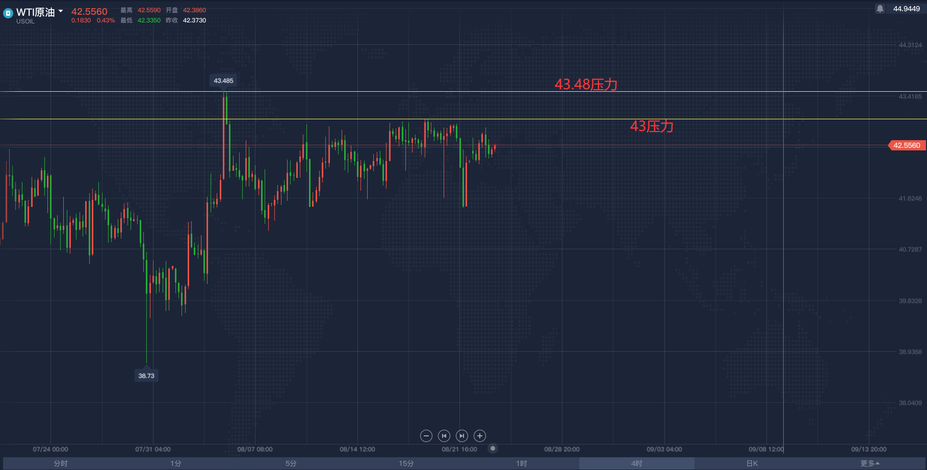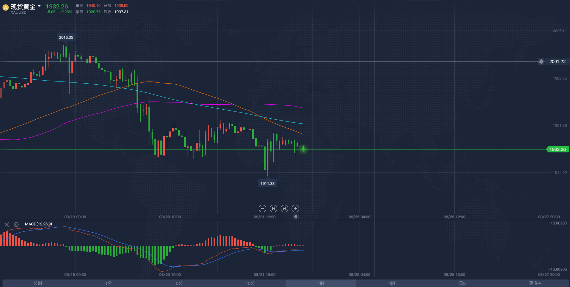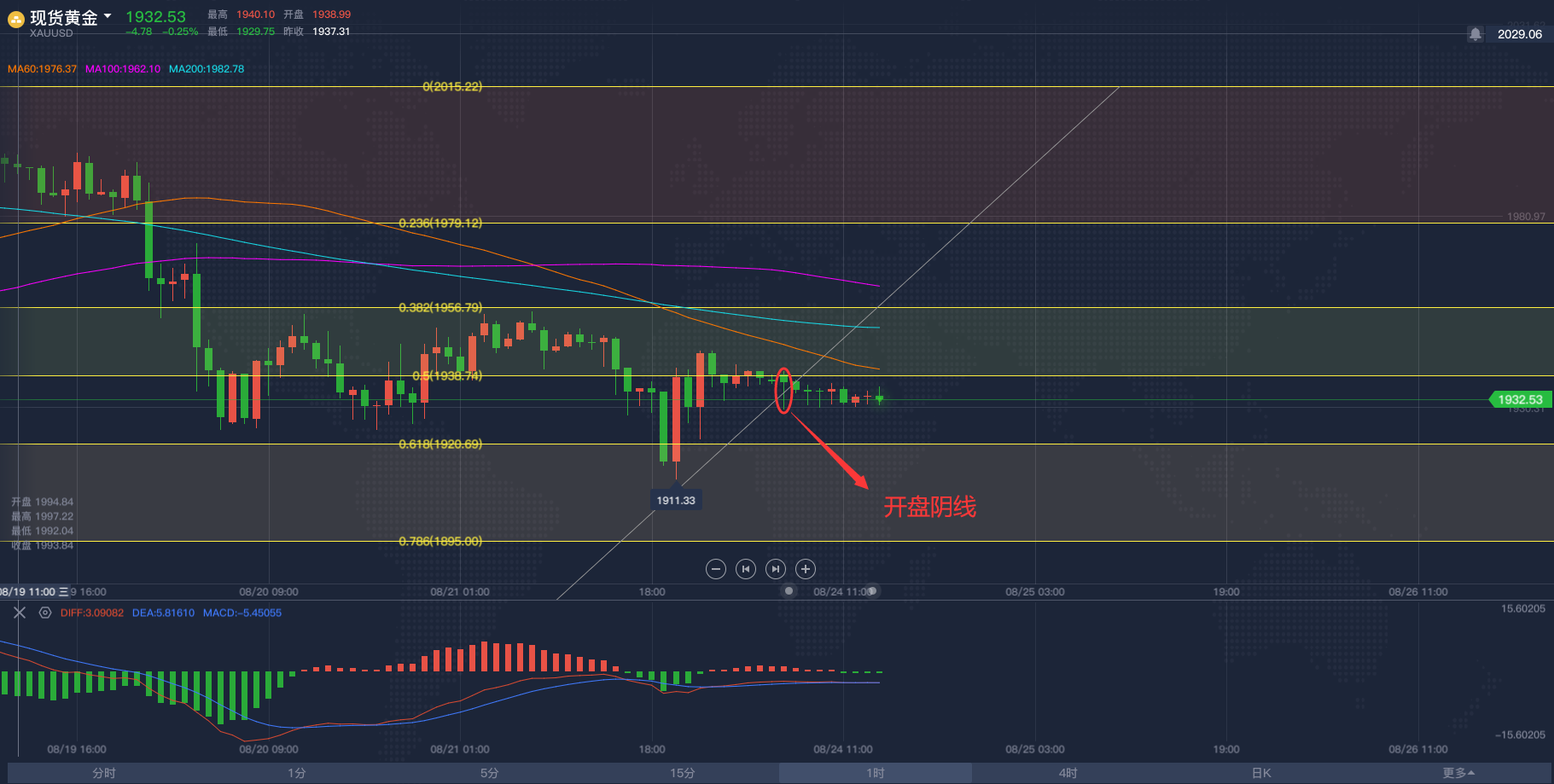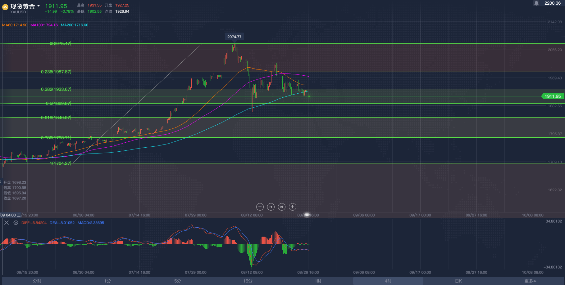 黄金亚市短线操作建议,飓风终于让原油冲破区间!2020/8/26各位投资朋友们大家好,我是阿满。昨天晚间跟大家分享了一下对于黄金看空的想法,头肩顶形态还在继续,大幅抛售是确定的。目前黄金市场受到1913附近的支撑阻力,这个点位是下行趋势斐波那契的0.236回调位,在我看来,黄金要跌的话,这些支撑都不会太顽强,像昨天晚上下破1921(历史前高位置)根本没有多呆一秒钟。为啥还要给到大家这个点位呢,主要是现在的亚盘阶段行情不会有太大波动,大家想做交易依然利用低多高空的思路去做,那么底部需要关注的点位则是1913附近,上方看到MA移动平均线60日均线与100日均线给到的压力位分别是1933-1937,