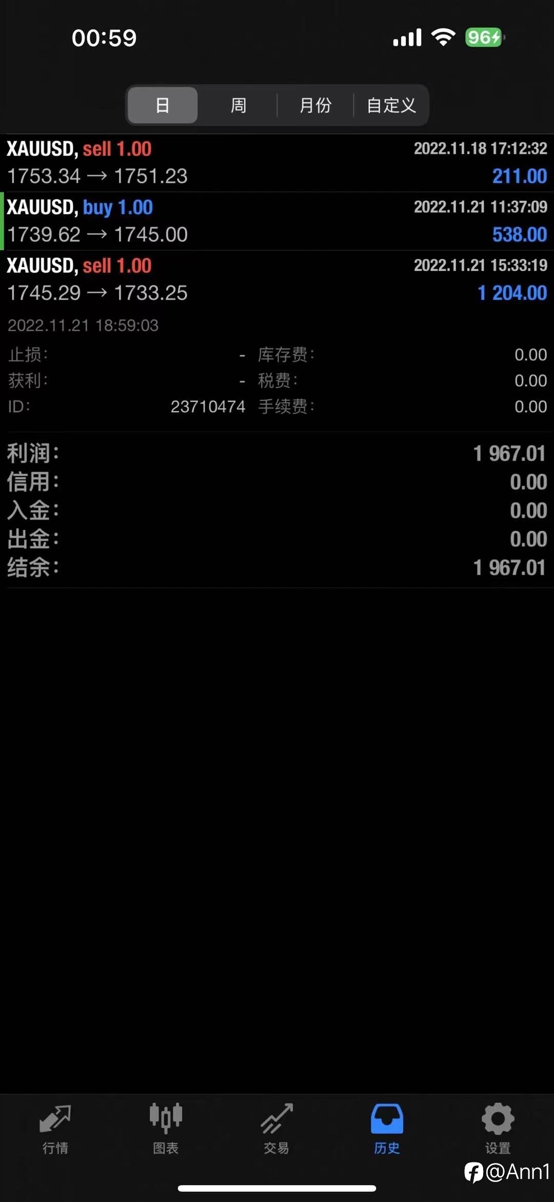 上周100美金以上的单边行情,照常运行也是相当给力拿下这次大单边行情最终获💰差不多2000美金